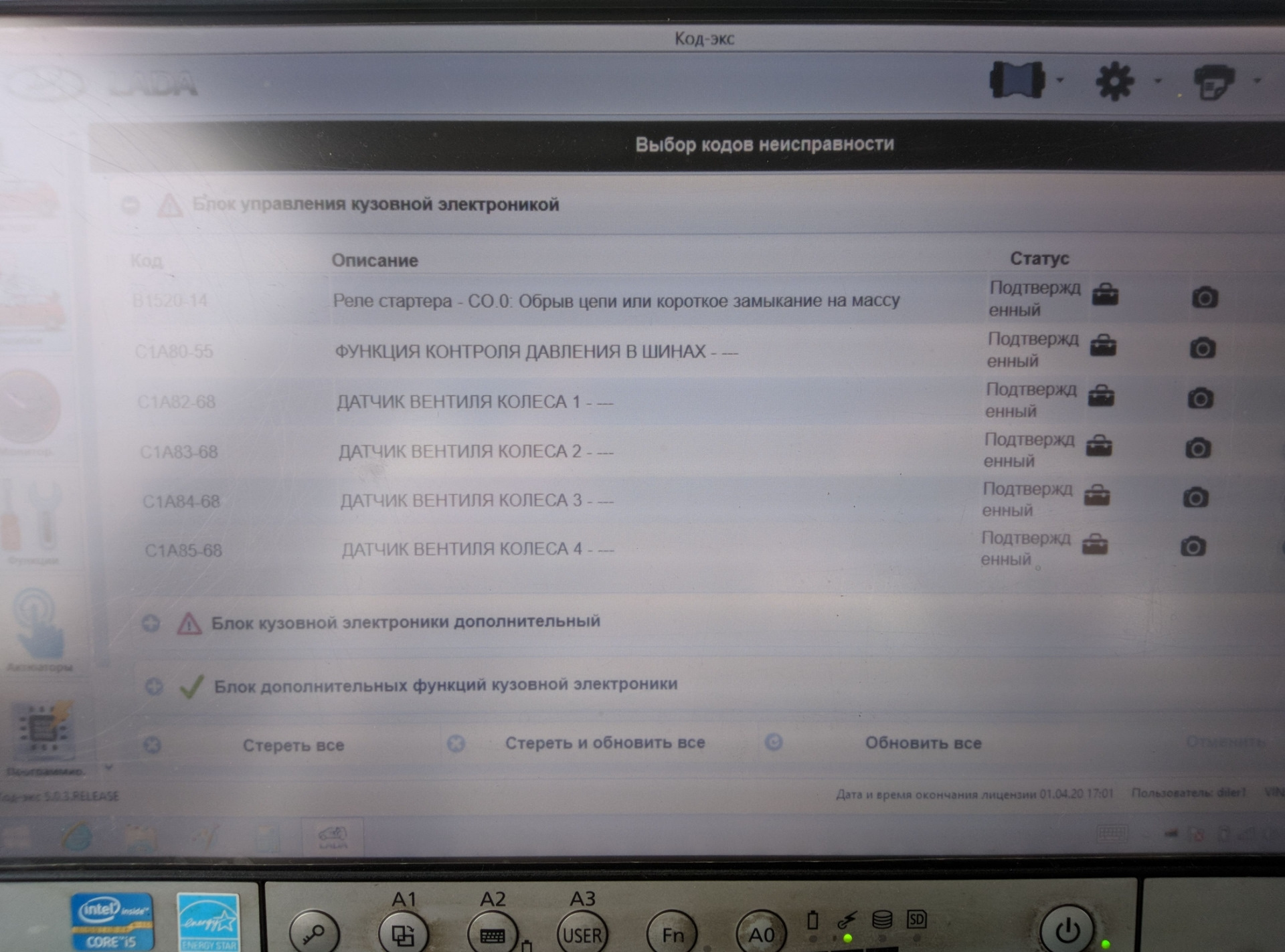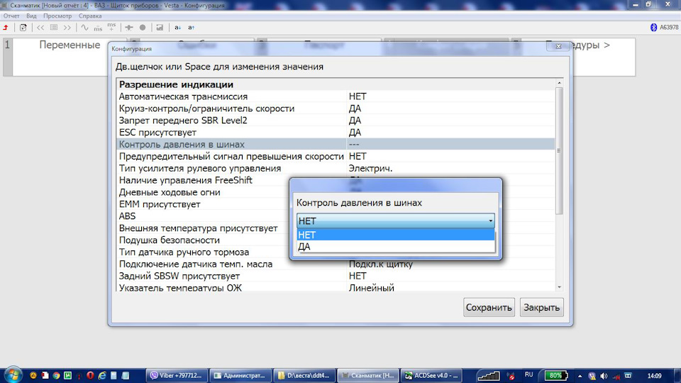Включить систему контроля давления в шинах Vesta (ТПМС)