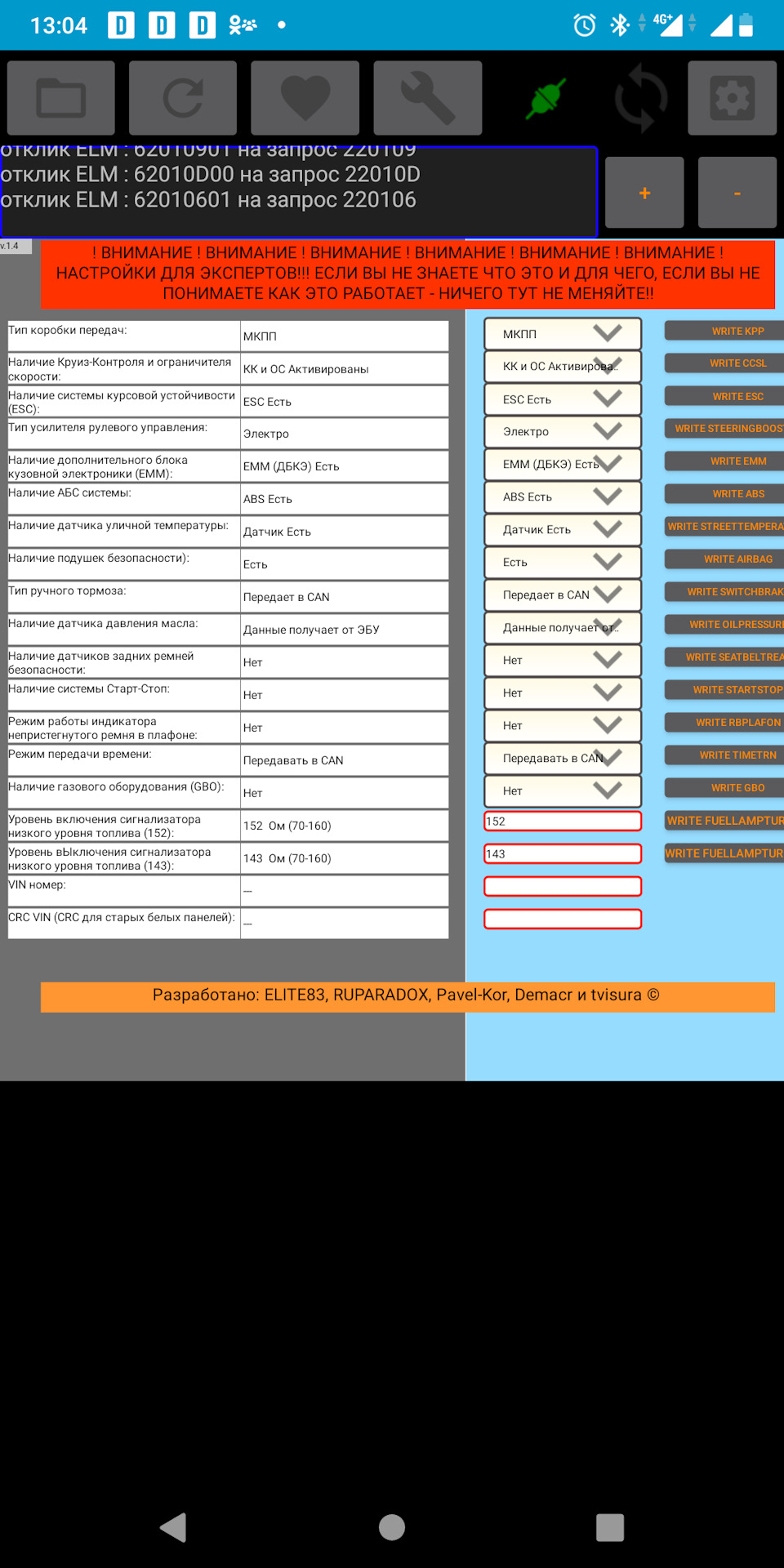 Последнее что осталось — это изменение ВИН номера и пробега, но с этим есть сложности, похоже ВИН номер можно записать только ОДИН раз, если его нет, а пробег только увеличивать дает
