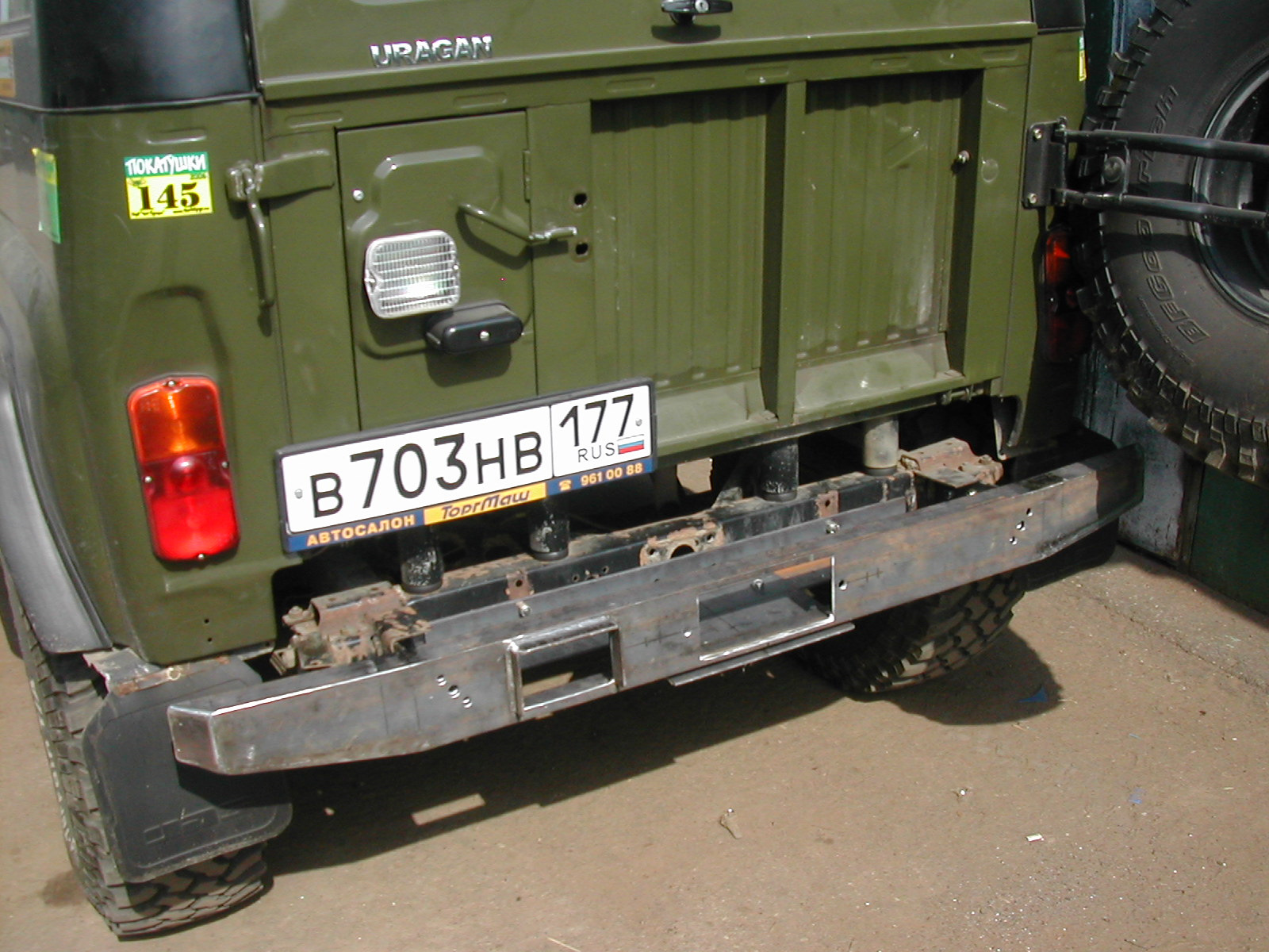 — для доступа к ручке свободной размотки сделал вырез в бампере, закрываемый номером