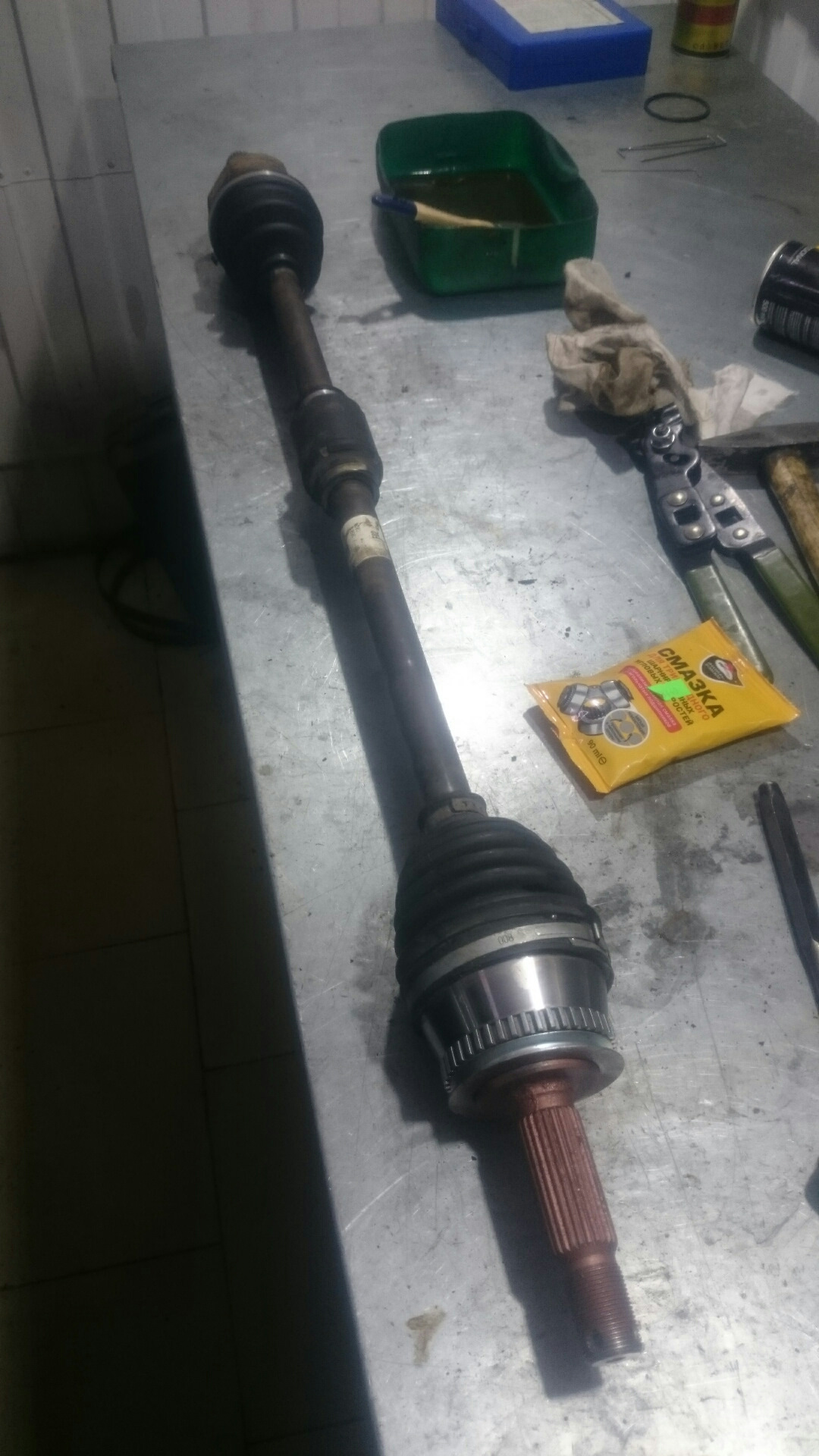 Наружные шрусы обслужены, а вот с внутренними беда. После перегона стало выкидывать смазку.