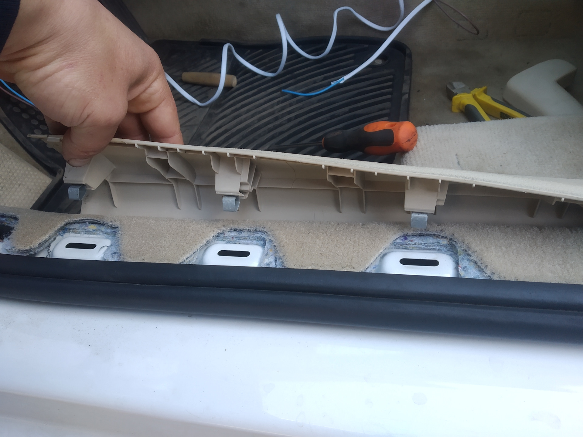 Снимаем диван и обшивку багажника.
