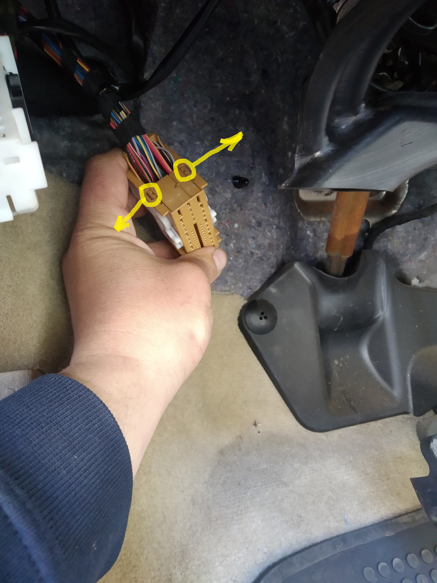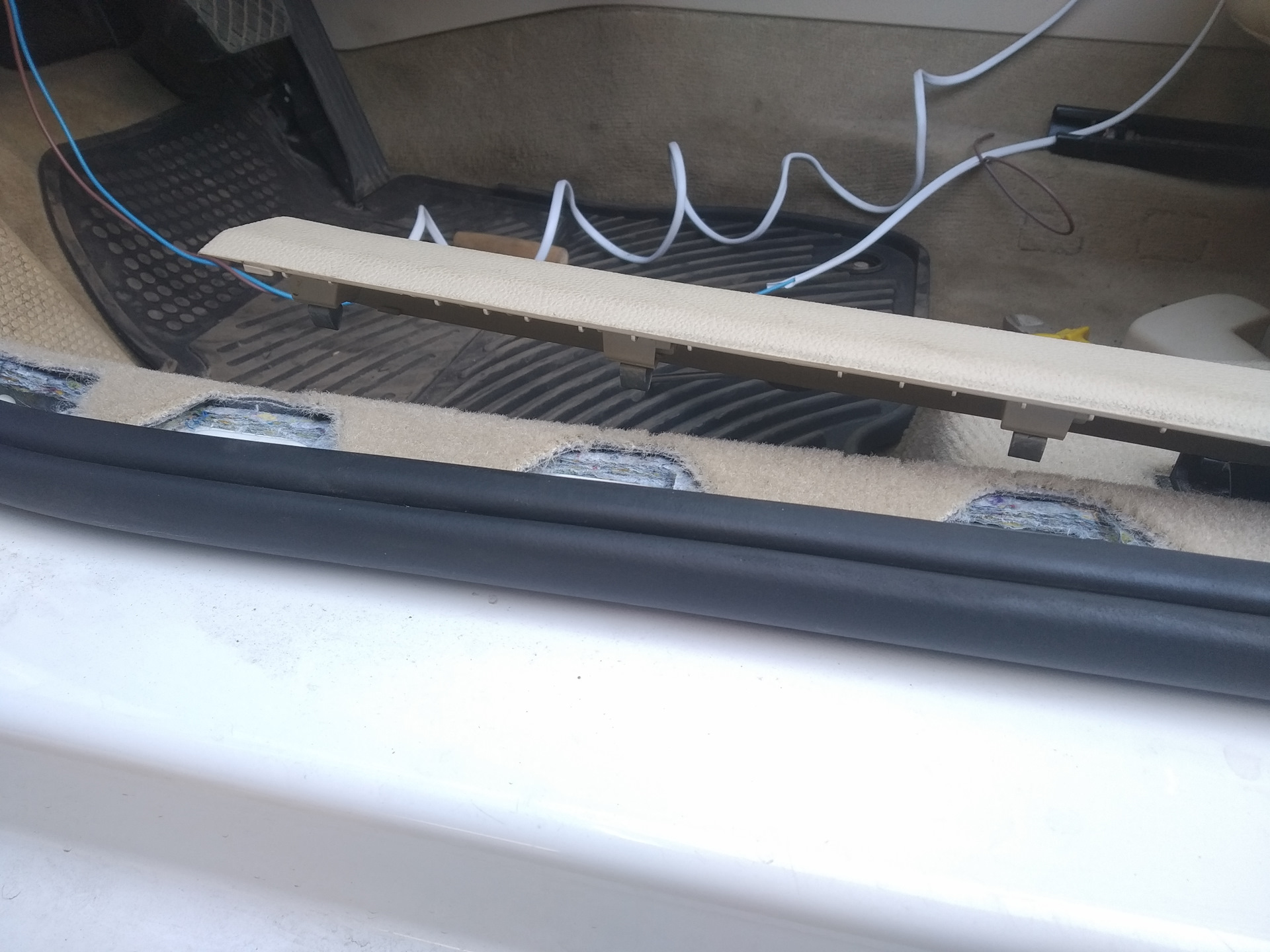 Разбираем все панели проходящие по порогу автомобиля что бы увидеть жгут проводов.