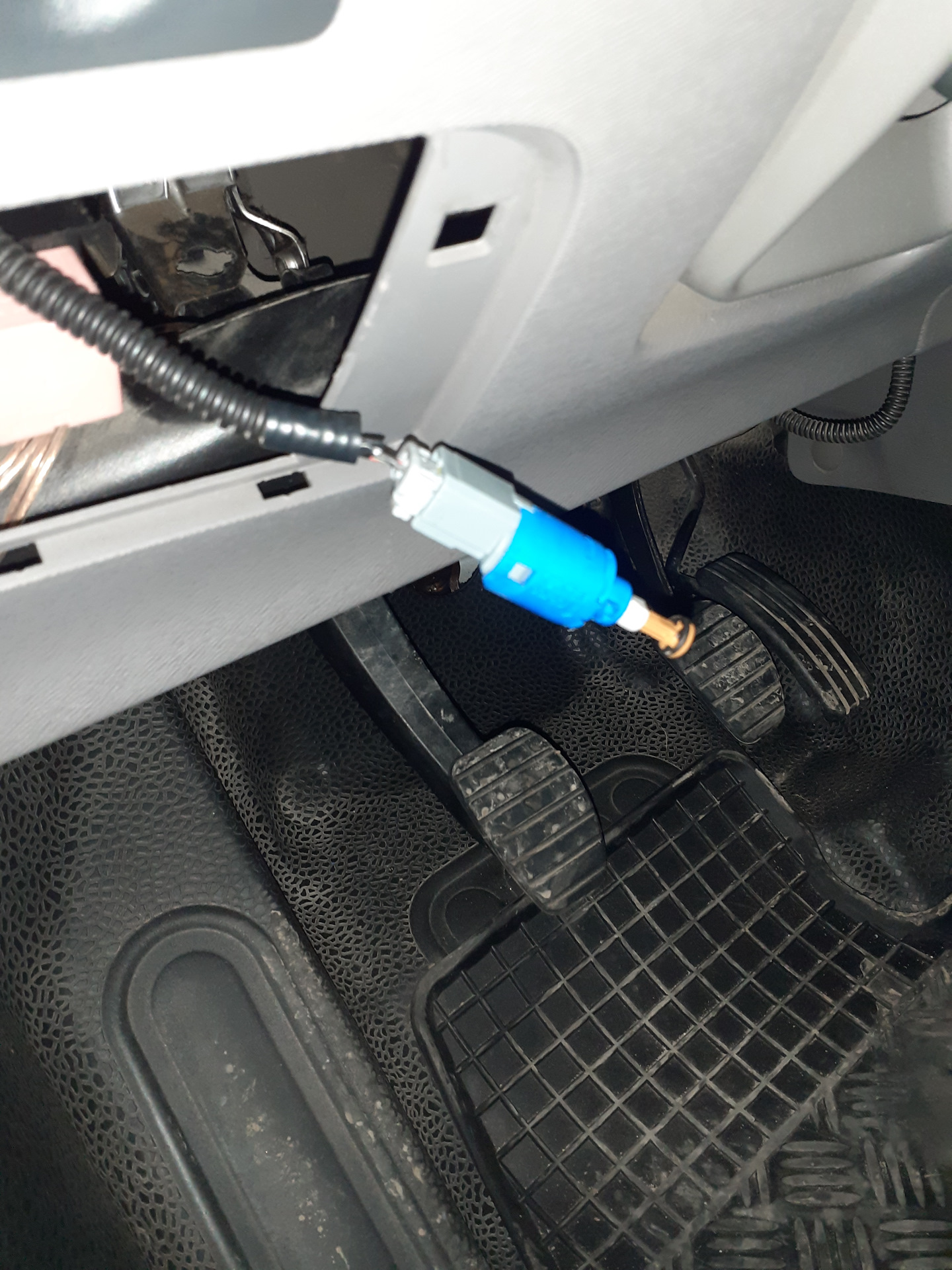 Педаль тормоза. По сути тоже самое. Его можно не вынимать, так как вынимать его немного проблематичные. Тут уже смотрите как вам удобнее. Но, при отпускании педали тормоза, между датчиком и площадкой педали подложите любую монетку. Отпустите педаль. Датчик защелкнется, монетку извлеките. Как-то так.