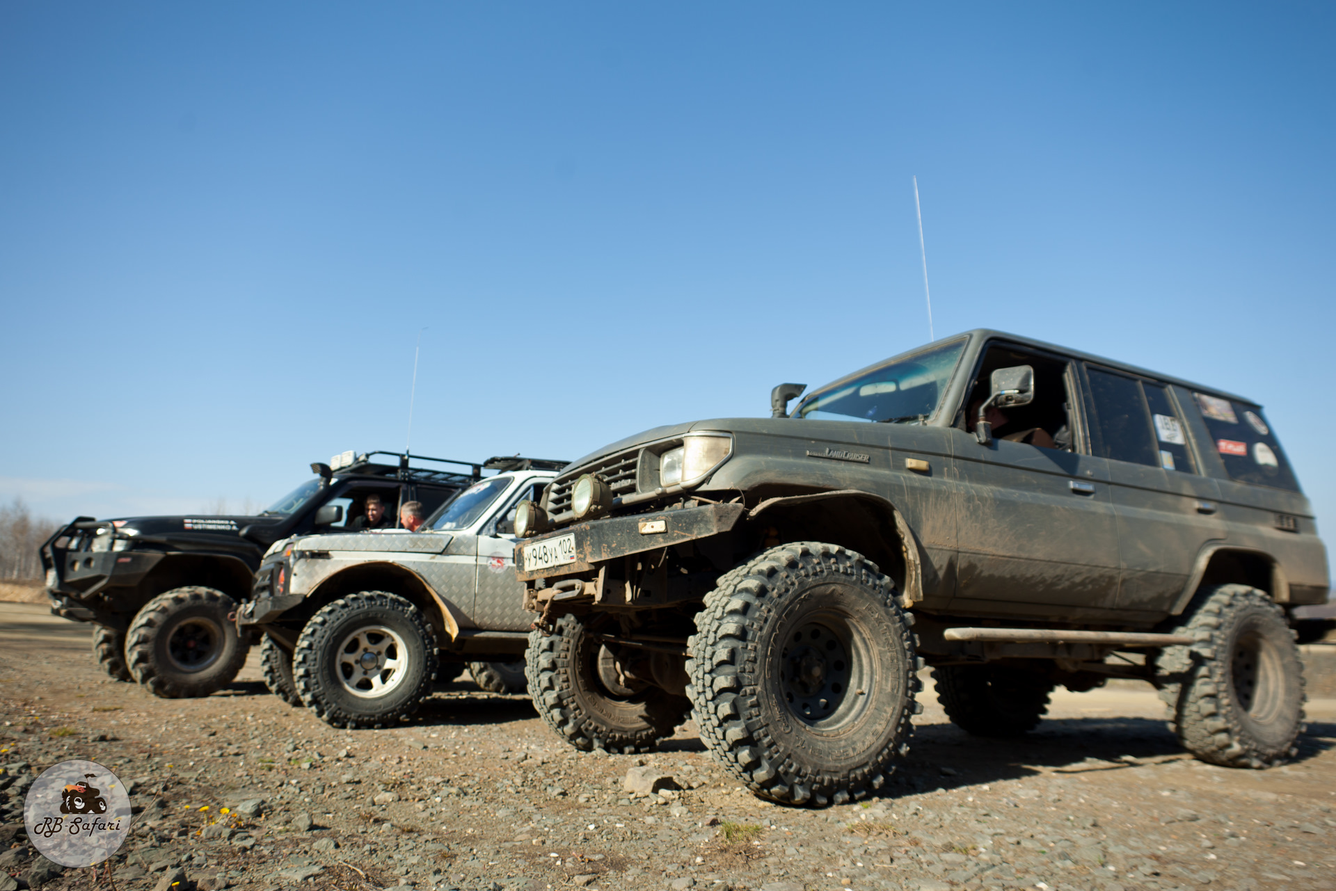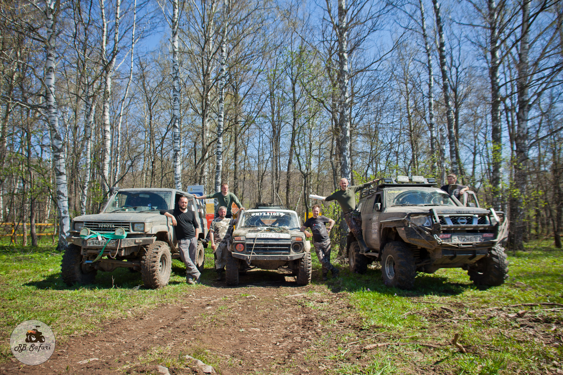 Вторая машина была легенда — Прадо 78 на 36 симаках и на всех блоках. Пилот Александр- бывалый автотурист. Ездит с головой. Штурман Александра – Николай. Механик, владелец нивы. Николай изолентой и проволокой сможет отремонтировать на машине любой агрегат даже на иномарках.