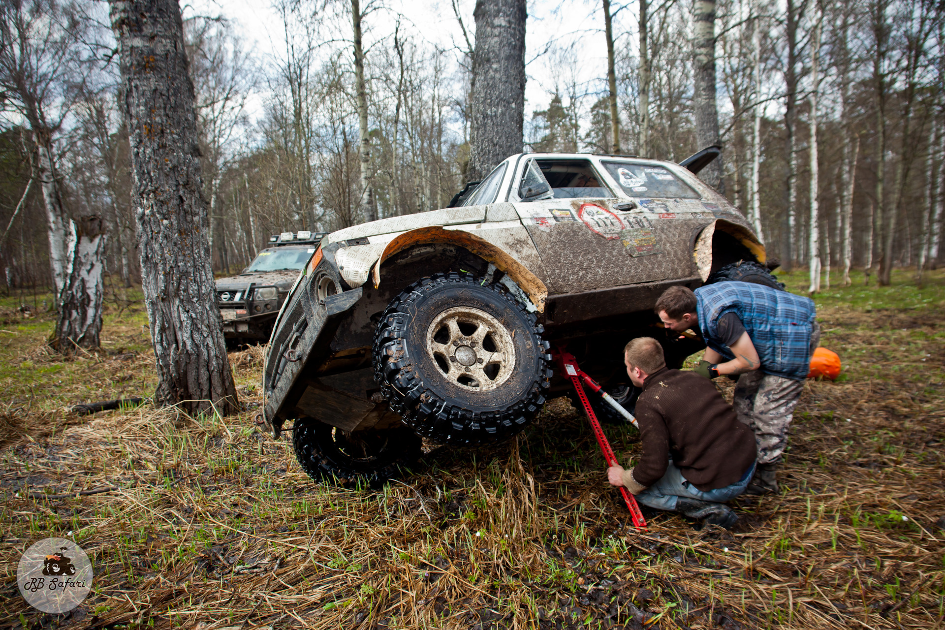 2. Подготовка машины должны быть на высоте. Будьте готовы к кузову авто «по форме леса». Участок, который проходится через бурелом, не щадит лкп. Бревна, которые нужно будет переезжать – большие. Берите весь ЗИП, который у вас есть. Связь кончается в пос. Макарово, а появляется только в Нугуше. Не отрицаю, что летом можно пройти маршрут на МТ резине, но как минимум – в лебедках своих вы должны быть уверены. Уж про использование корозащитных строп и утяжелителей, я думаю, напоминать не надо. Это аксиома внедорожного туризма.