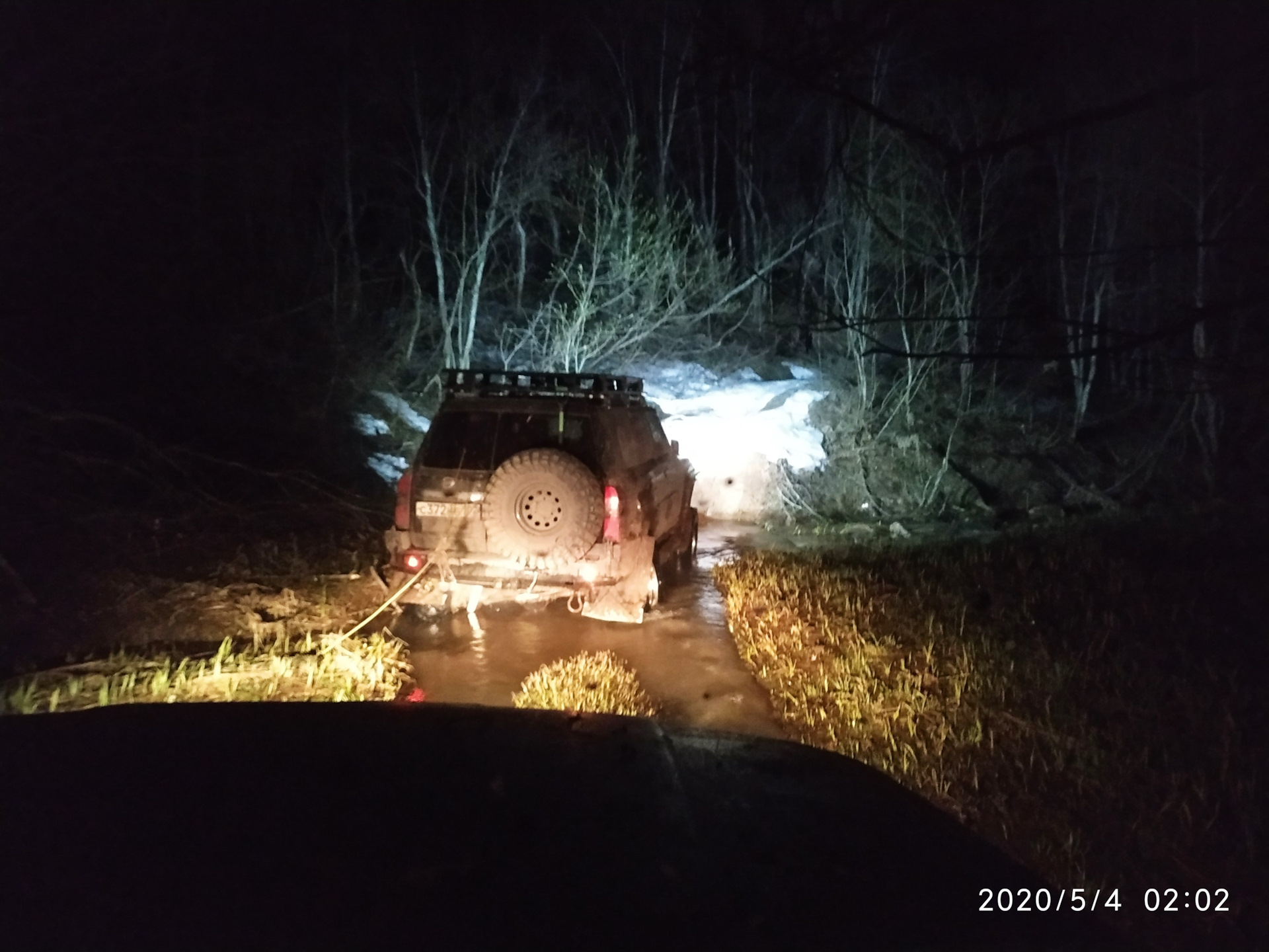 Итак… В десятом часу мы выходим к водохранилищу, где наш Патрол решил, что нам домой ещё рано и садится в болоте так, что последующие 2 часа опять были потрачены на его извлечение=) Пока вытаскивали трангладита из болота, мы на ниве поехали в посёлок. Успели купить воду. Это было счастьем. Все запасы воды, топлива и сил мы кончали на этом маршруте. Выехав на асфальт мы уже спокойно попили чай с печеньками, накачали колеса, отремонтировали панару на 70ке, вернули фару на ниве и тихим храпом рванули в Уфу. Маршрут был пройден и назван нами «Куперлинское кольцо РБ-Сафари». В 11 утра 5 мая мы вернулись из Башкирских джунглей. На работу 6 мая, а это значит, что есть время привести себя в порядок и более ли менее выспаться. Сразу скажу, что отчёт написан на эмоциях после прохождения. Возможны ошибки и недочёты. В общем первомай у нас был полноценный. Я, как и планировал, выпал из городской жизни полностью.