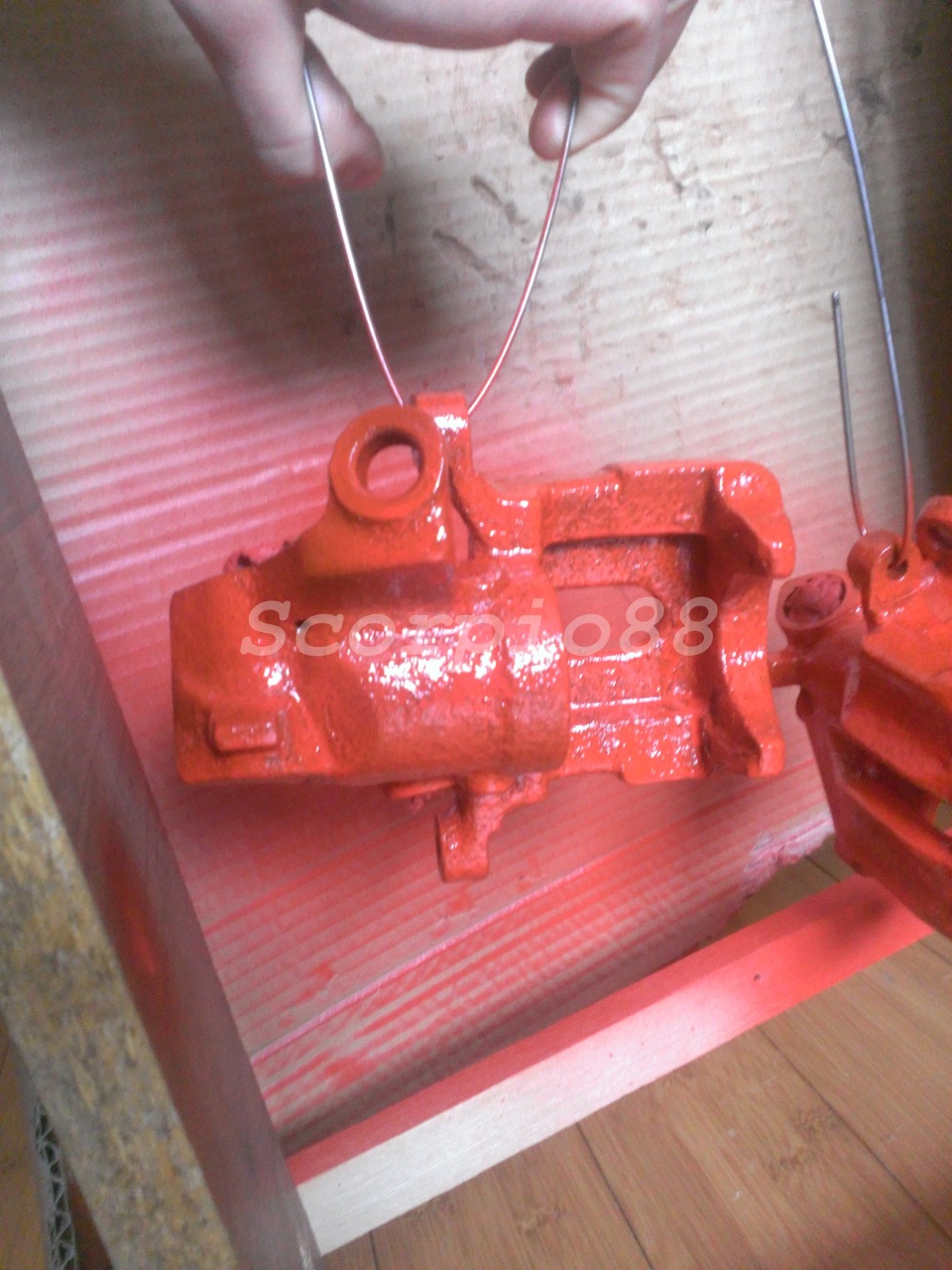 На обоих комплектах суппортов которые я перебирал были следы коррозии на штоках, из-за этого и клинил ручник. Больших дыр небыло, то ничего не запаивал. У кого большие дыры, можно или запаять паяльником или заварить. Ну или купить новый если удастся где-то найти. Очень гладкой поверхности нам не надо, т.к. с тормозухой он не контактирует если все уплотнительные кольца впорядке. Очищаем от ржавчины. Я закрасил чёрной краской верх и низ штока, а сам палец не закрашивал. также покрасил пружину ручника