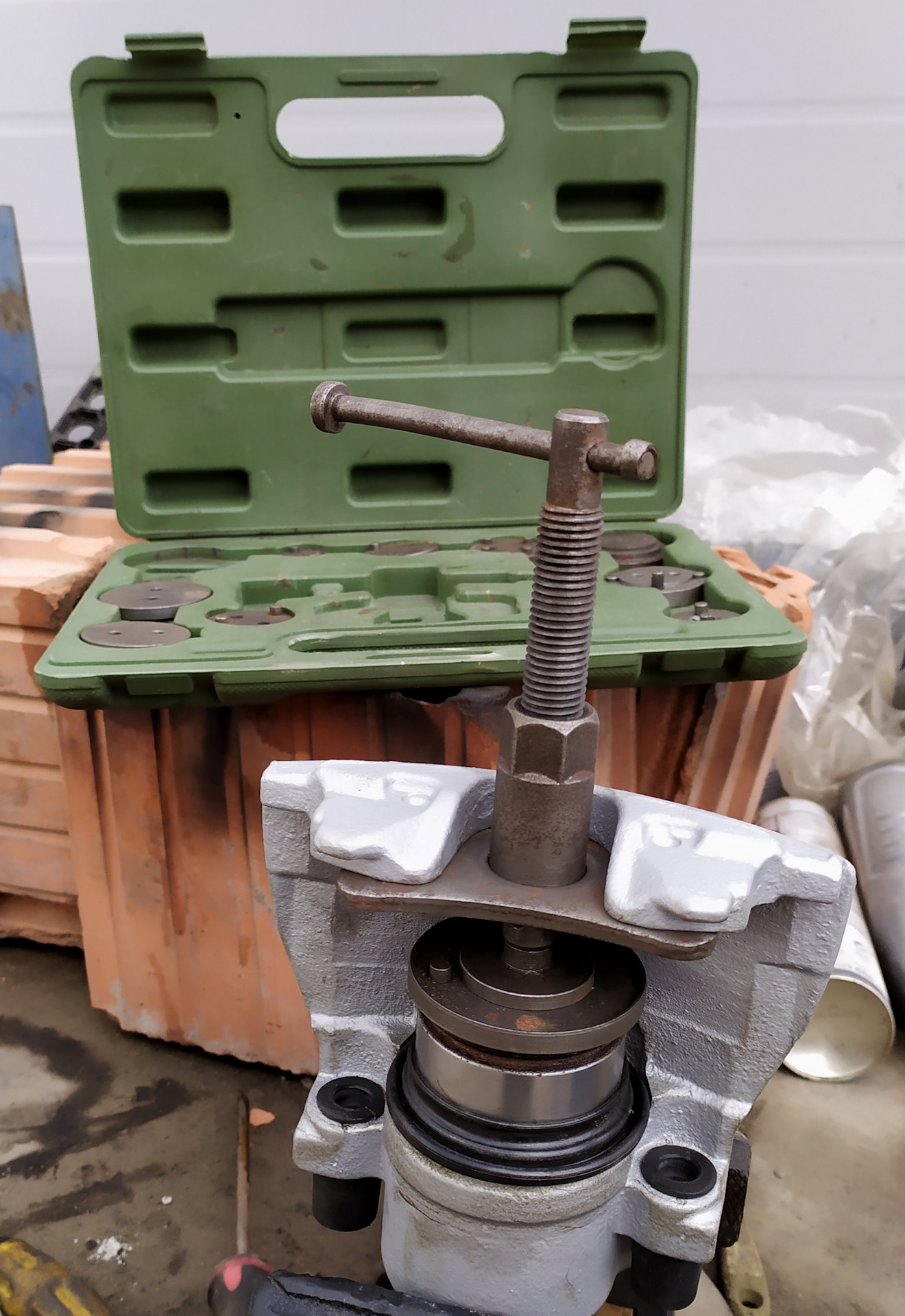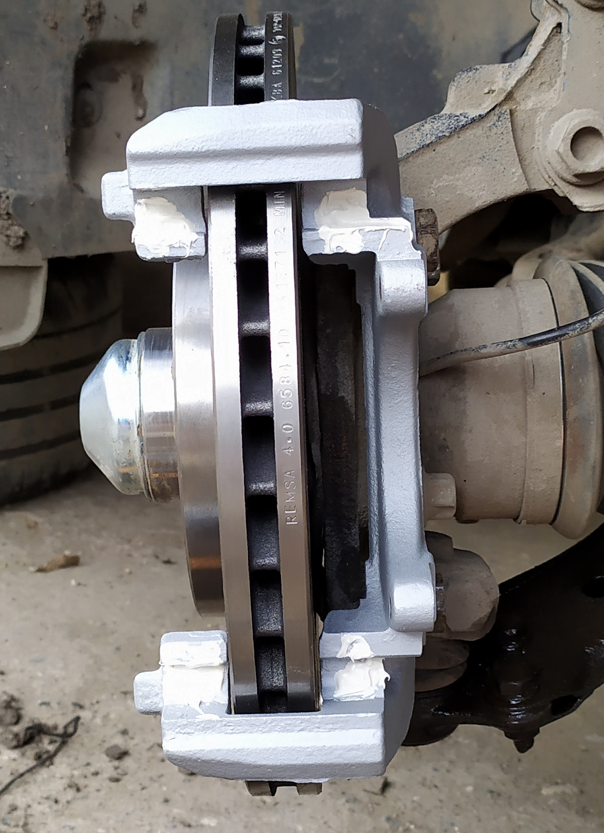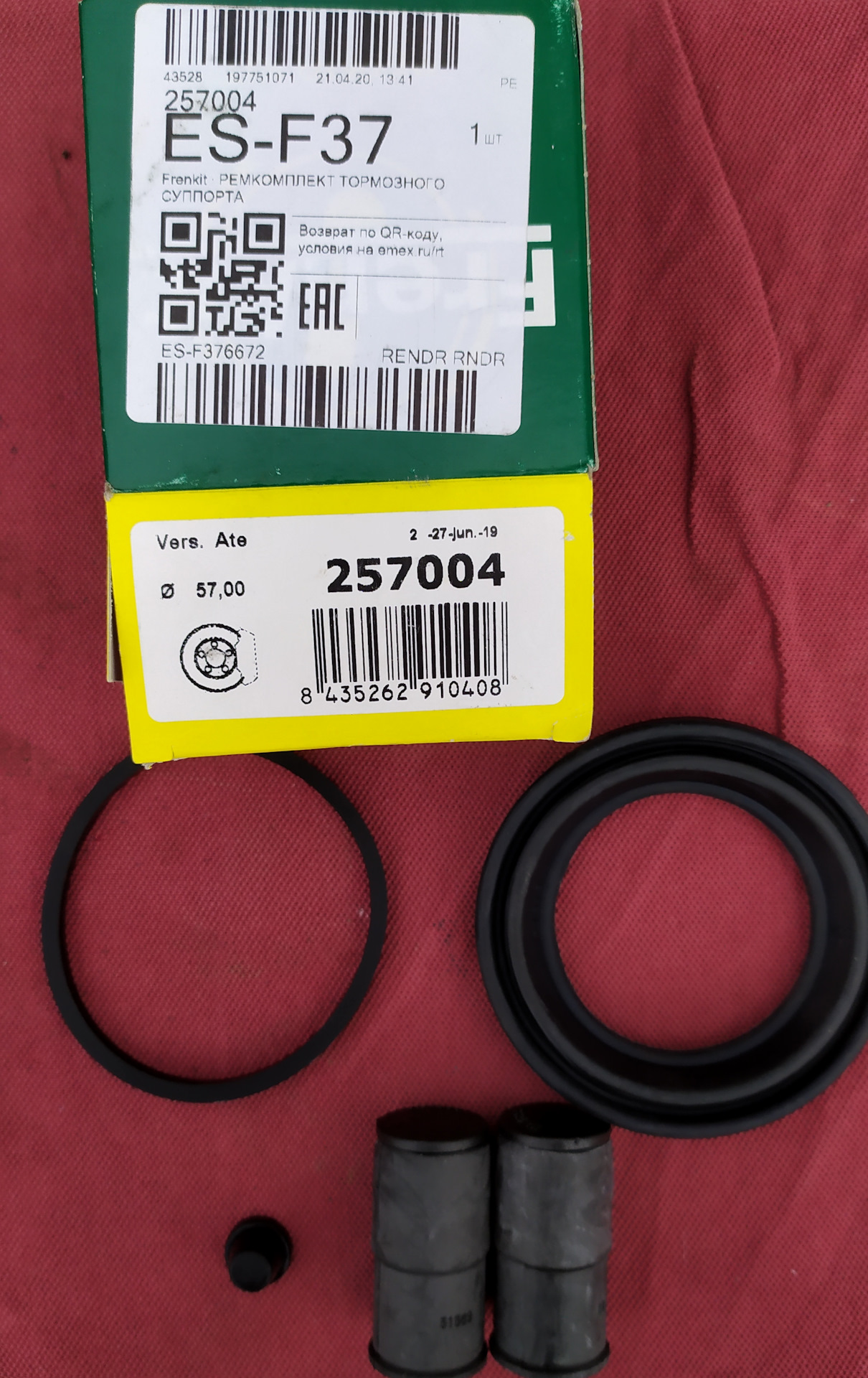 При замене ступицы порвал пыльник на суппорте. С начала заказал один ремкомплект, потом решил сделать оба суппорта. на колодках оставалось 5-8 мм, диски 22,5мм-решил менять полностью тем более диски и колодки еще с осени лежат. За одно и обновить внешний вид суппортов.