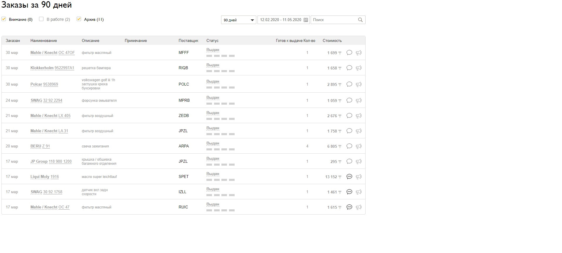 В общем, в 2020 году для проведения ТО заказал следующее: