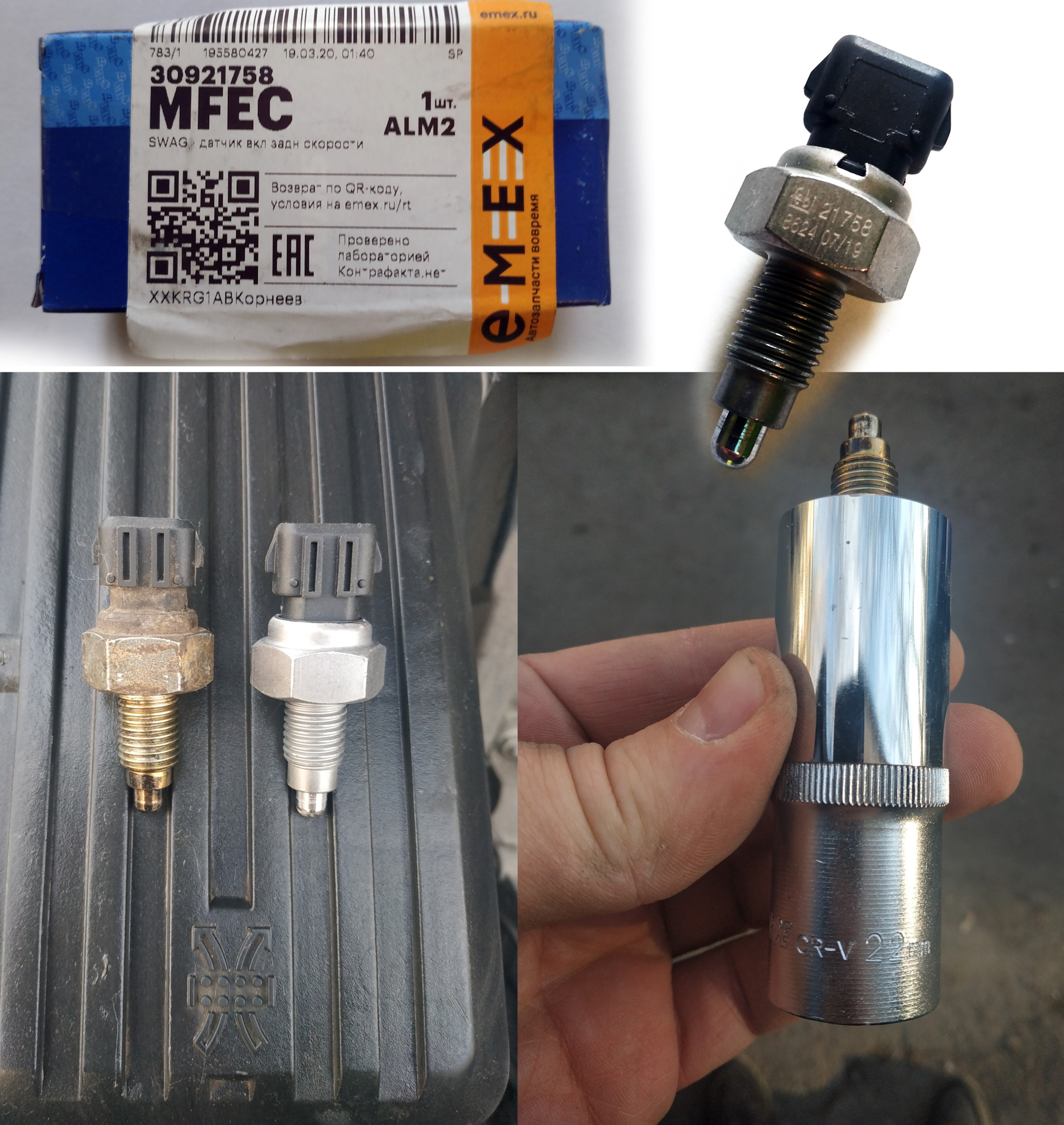 — заменил датчик включения задней скорости. Заказывал SWAG, пришел FEBI. Датчик работает. Ехать назад стало светлее. Датчик выкручивается из КПП головкой на 22.
