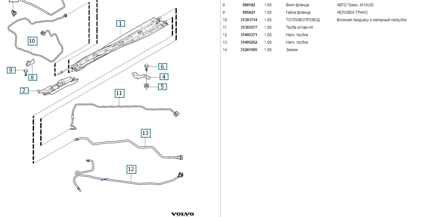 — топливопровод с тройником 31405371 на сброс давления в насос.