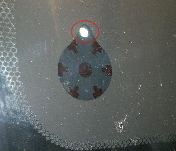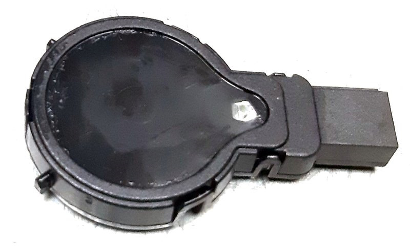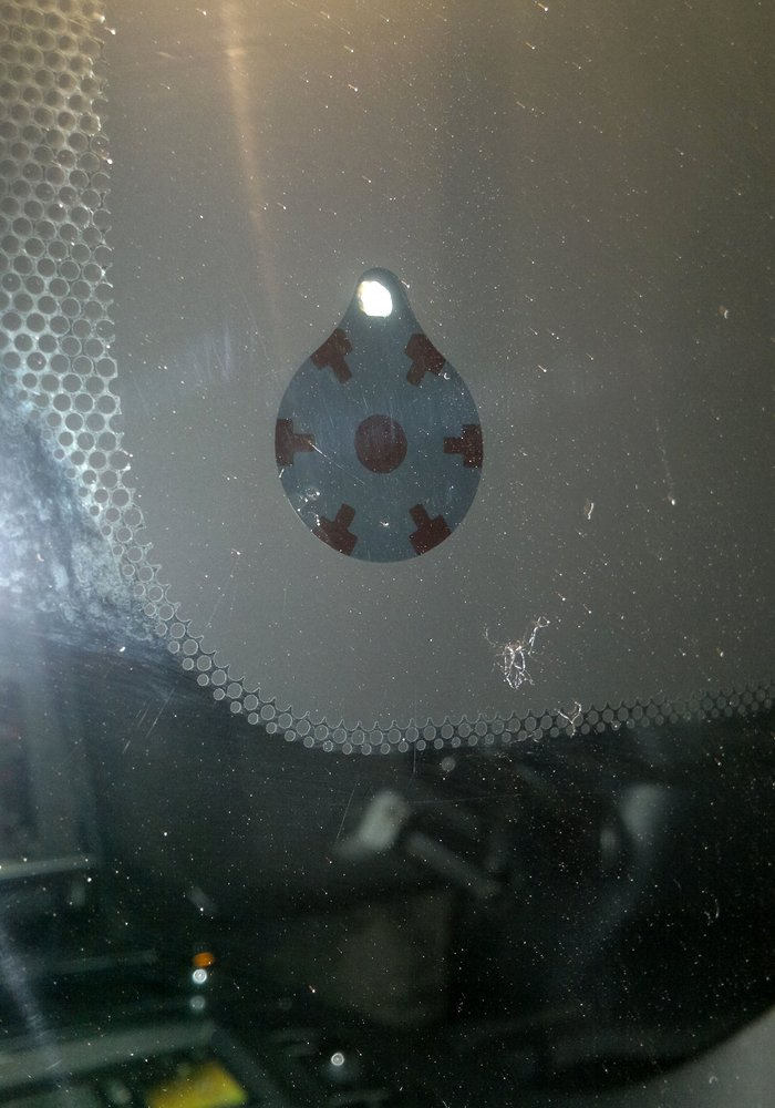 А вот сам датчик увидеть непросто. Если мы посмотрим на то же место снаружи машины, то ничего не увидим. Ну, блестит там какая-то точечка и всё: