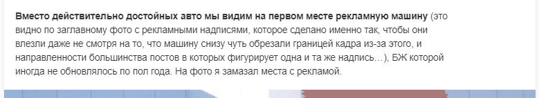 1) Пригорание, что в ТОПе рекламная машина. При этом похвалил много других авто, сказав, что они даже заслуживают места выше моей машины