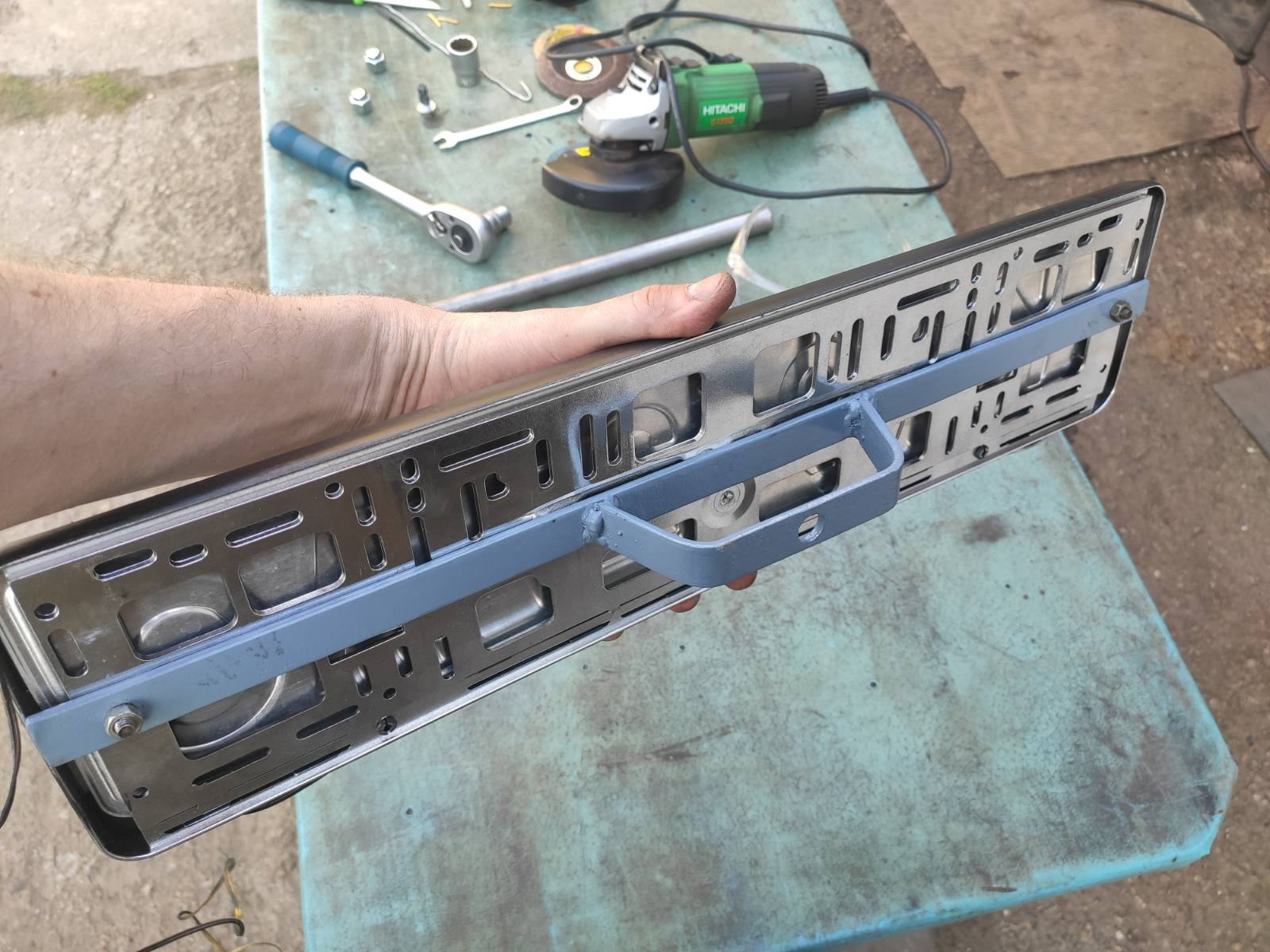 А у меня кронштейн запаски держится на 3 болтах, и есть два отверстия под еще два, вот через одно провёл проводку для номера.