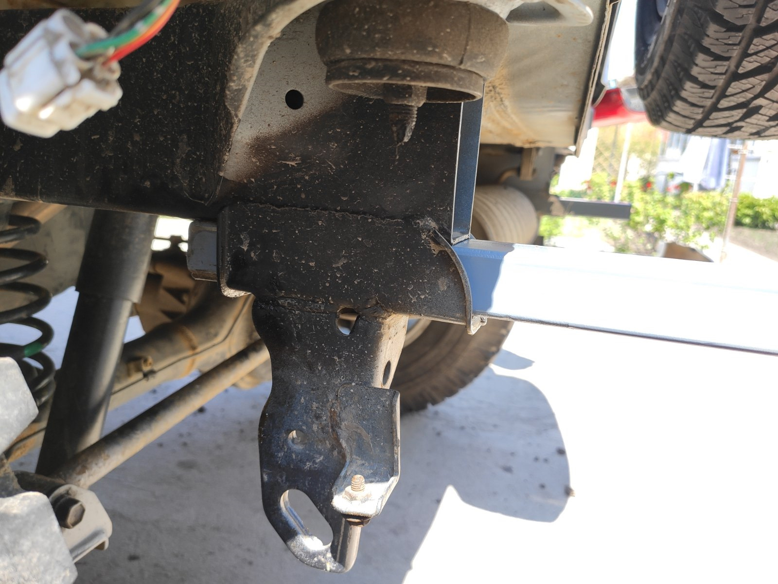 Установлен фаркоп с задней силовой трубой. За основу взят фаркоп с чёрного жимника, так как он идёт в разбор.
