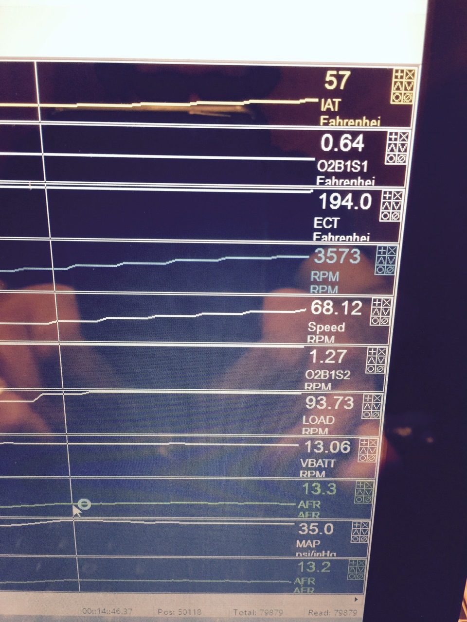 а кто не поймет я вкратце тут изложу, 35 пси это 2.4 бара, которые я уже вижу с 3600 об/мин, кто то то мне с пеной у рта доказывал что тиалы не раздуваются, ага расскажите мне … так вот смесь там очень бедная, 13.4 к 1 вместо положенных 11.7-12 к одному, машина рубит зажигание что бы спасти мотор, и правильно делает . так вот, это все процесс настройки и я думаю что свой план из 6 секунд я исполню легко и если повезет то на больше чем я думаю . и да 100-150 2.2 секунды с просерами по зажиганию и "резаным " давлением . так что ждите, скоро мы поедем как надо, всем хороших выходных !