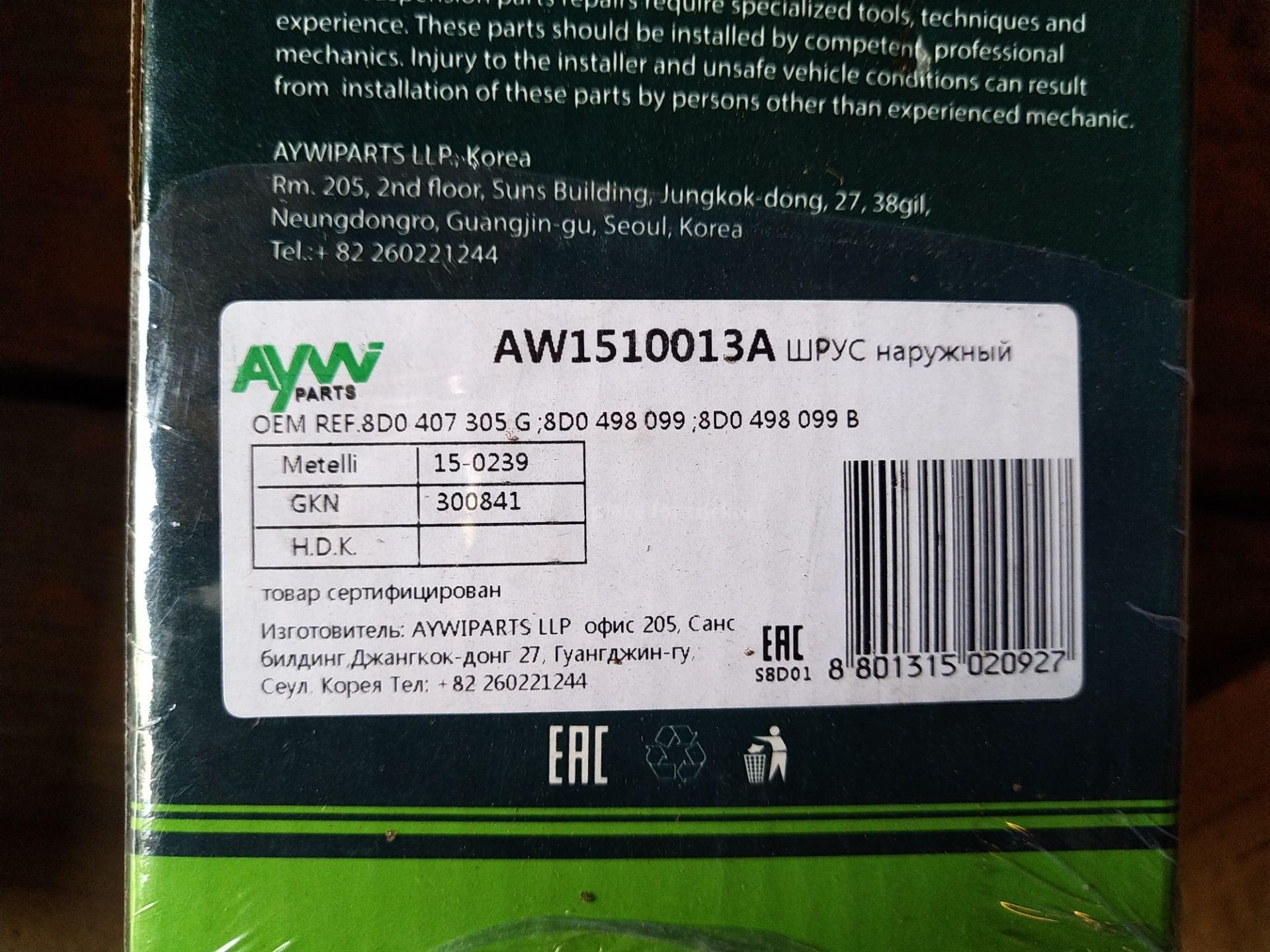 Для америкоса нормальная тема! Сам не раз уже менял з/ч хотя по вину сам выбирал и кстати со шрусами тоже вышла промашка только с внутренними. Одно хорошо с заменой никаких проблем.Теперь делаю заказ только предварительно покурив форум и увидев конкретно глазами что надо.