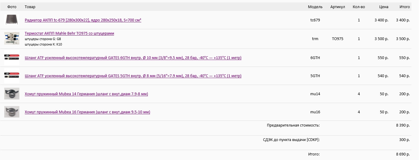 По сути это термостат АКПП Audi Q7 и заказать его можно в любом удобном месте по артикулу ТО975, но он идёт без необходимых штуцеров, заказать их можно на том же сайте. Без знакомых токарей (может вы и сам токарь)/желании запариться по штуцерам, смысла заказывать в другом месте особо нет.