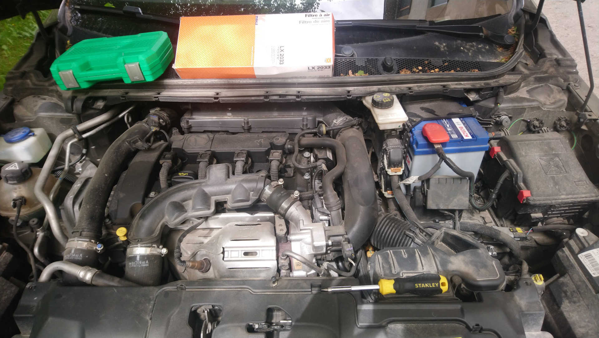 Не легко но и не тяжело на прошлом пежо было сложнее. Погуглив как и не нашел нечего, на дизельный есть, а на бензиновый мотор нет. Но и так было понятно где находиться фильтр.