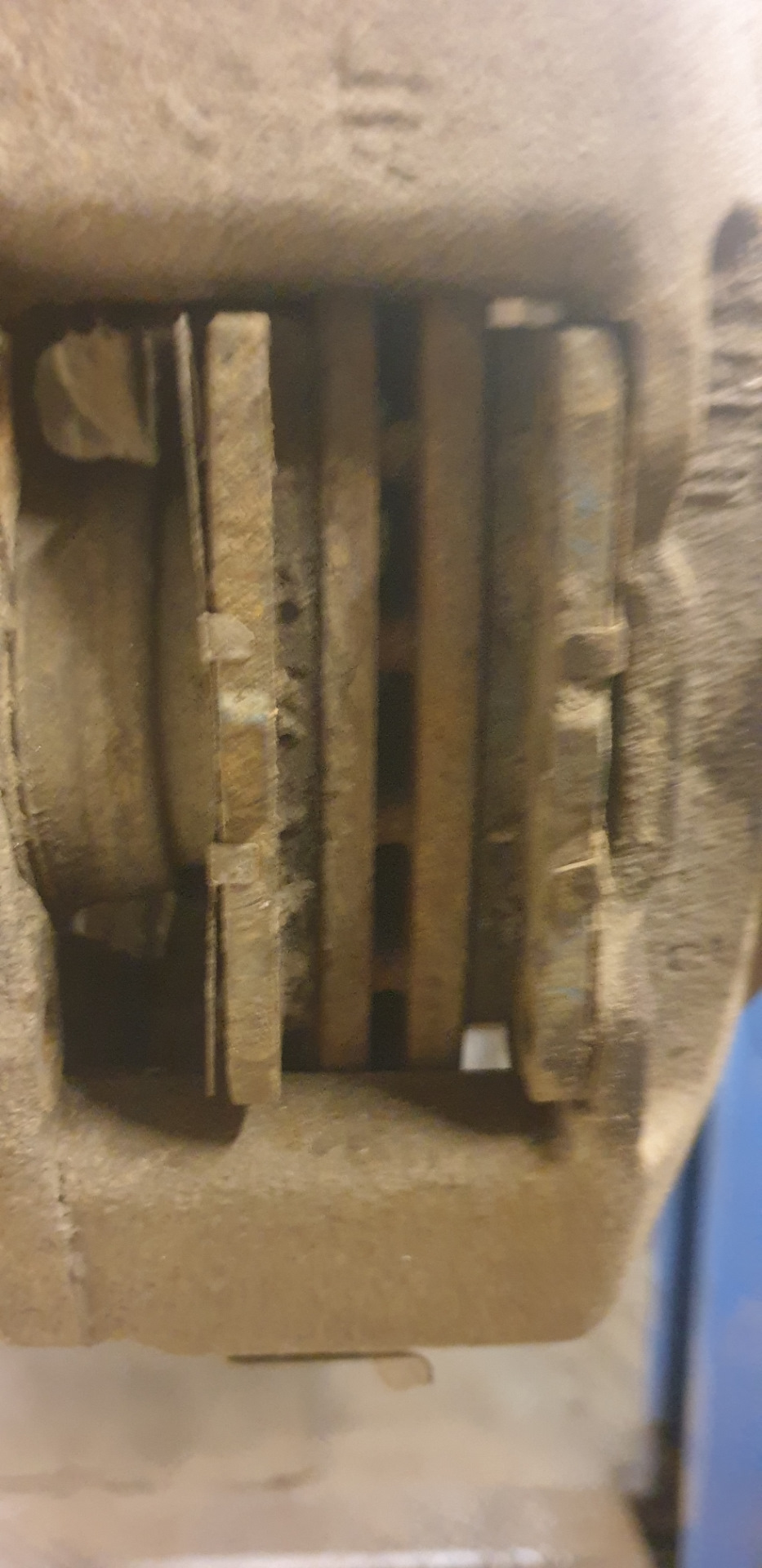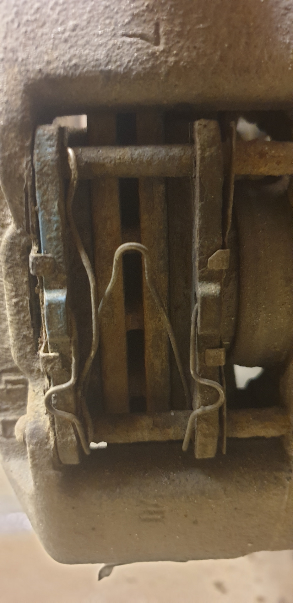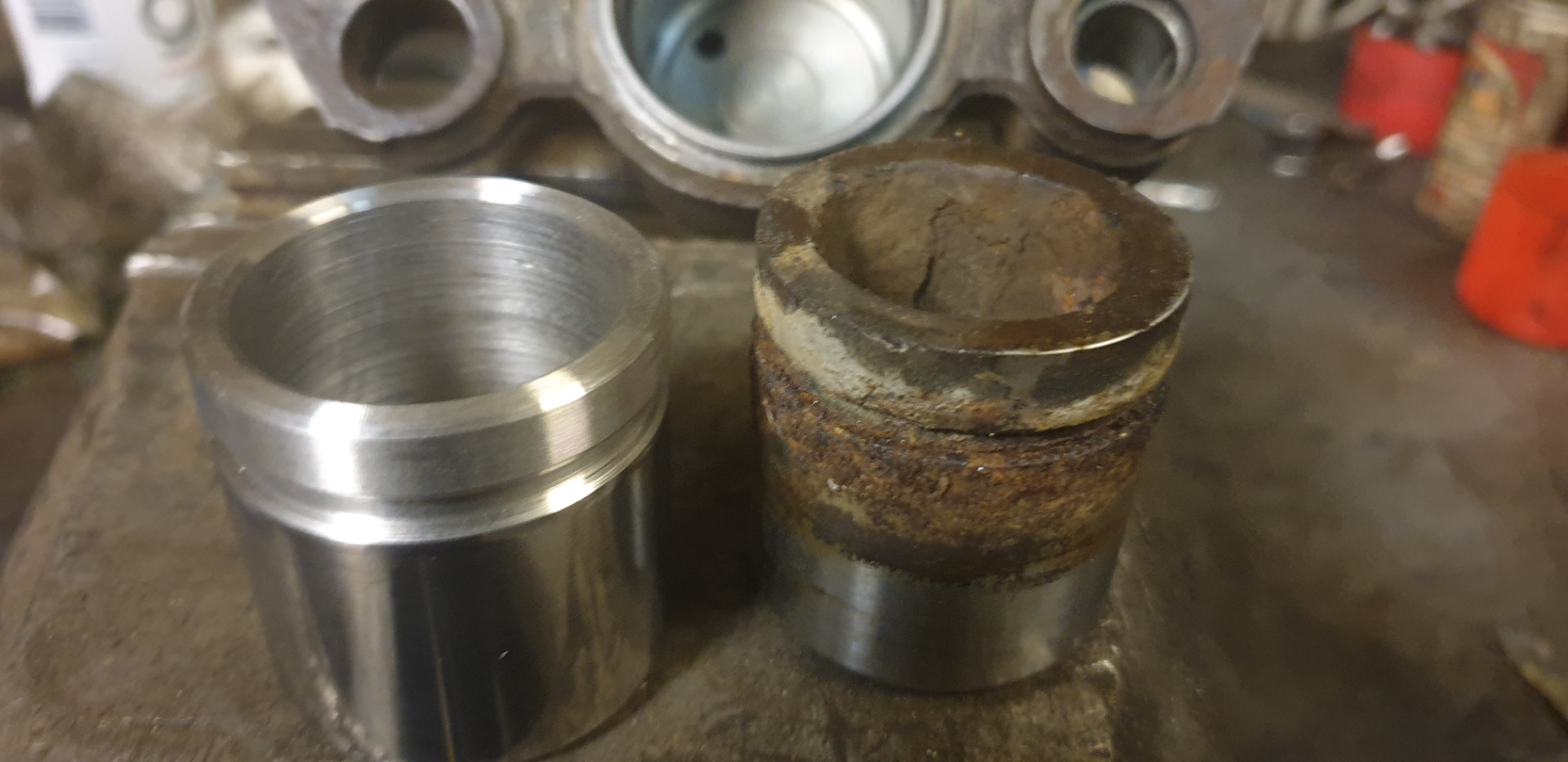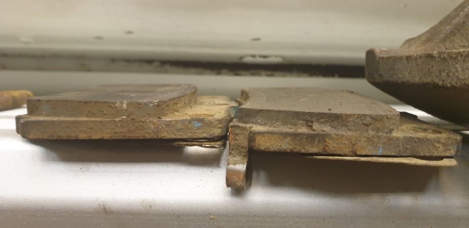 При вскрытии, демонтаже задних колес, приятный бонус, износ колодок равномерный, движение супортов по направляющим есть. Но собакин "порылся" под пылниками поршней, при целых резинках !выступающие из супортов части поршней откровенно заржавели!