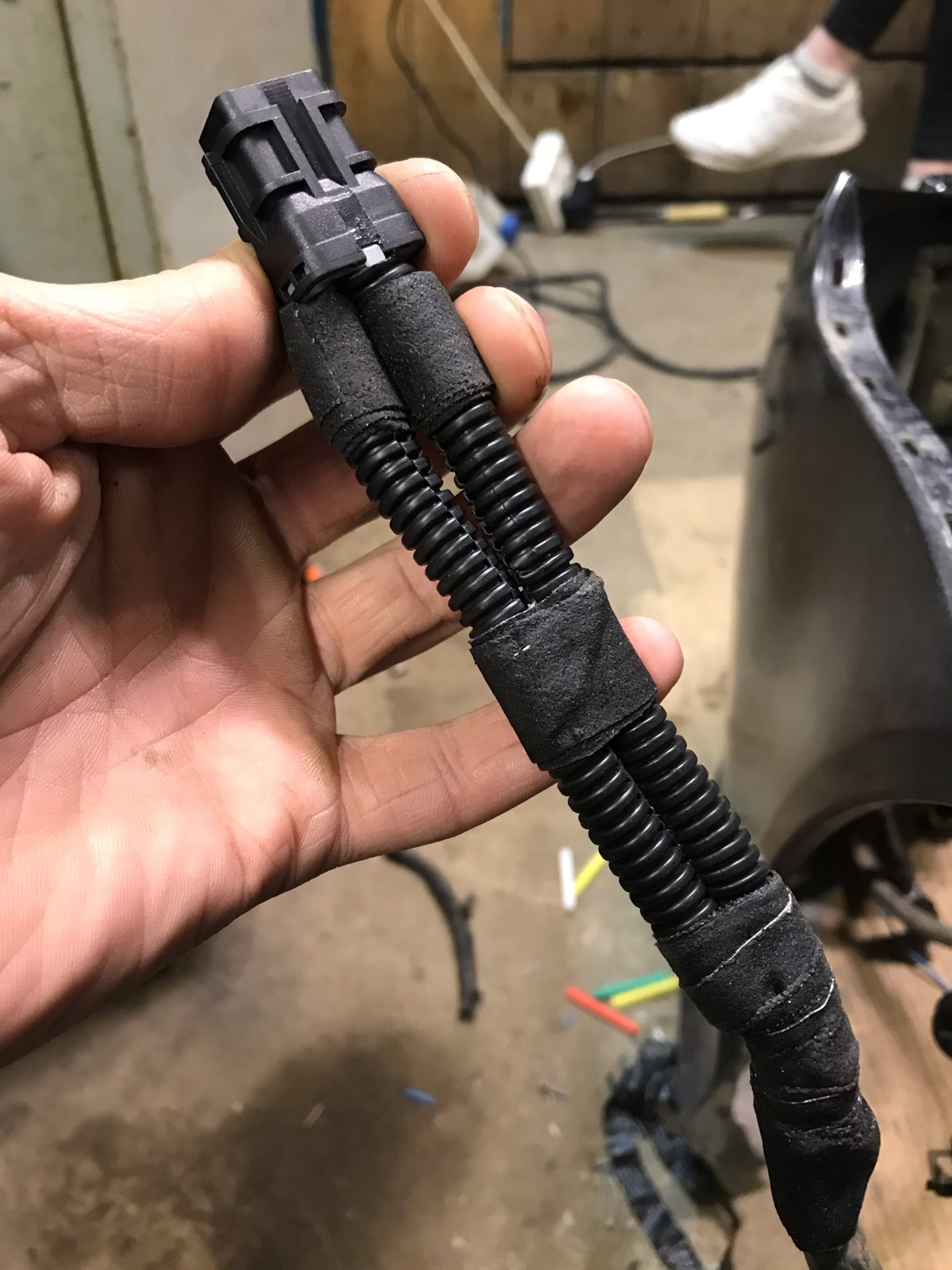 Упаковал все в новую черную гофру и точечно заматал пвх-изолентой. Изолента хорошо, но она не пропустит влагу обратно и она будет стоять в гофре как это было у меня в прошлый раз.