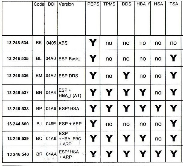 Сравнил родной ЭБУ ABS и заменный. Тут меня ждал небольшой неприятный сюрприз. Номера блоков ЭБУ не совпадали. Проверить это, не сняв блок с авто было невозможно. Я был уверен, что совпадения номера 13 246 534 на самом гидравлическом блоке ABS достаточно для идентичности всей сборки ABS. Ошибся. Видимо, после 2007 года произошла модификация ЭБУ. Блоки ЭБУ (как я понял, но это не точно!) по годам:
