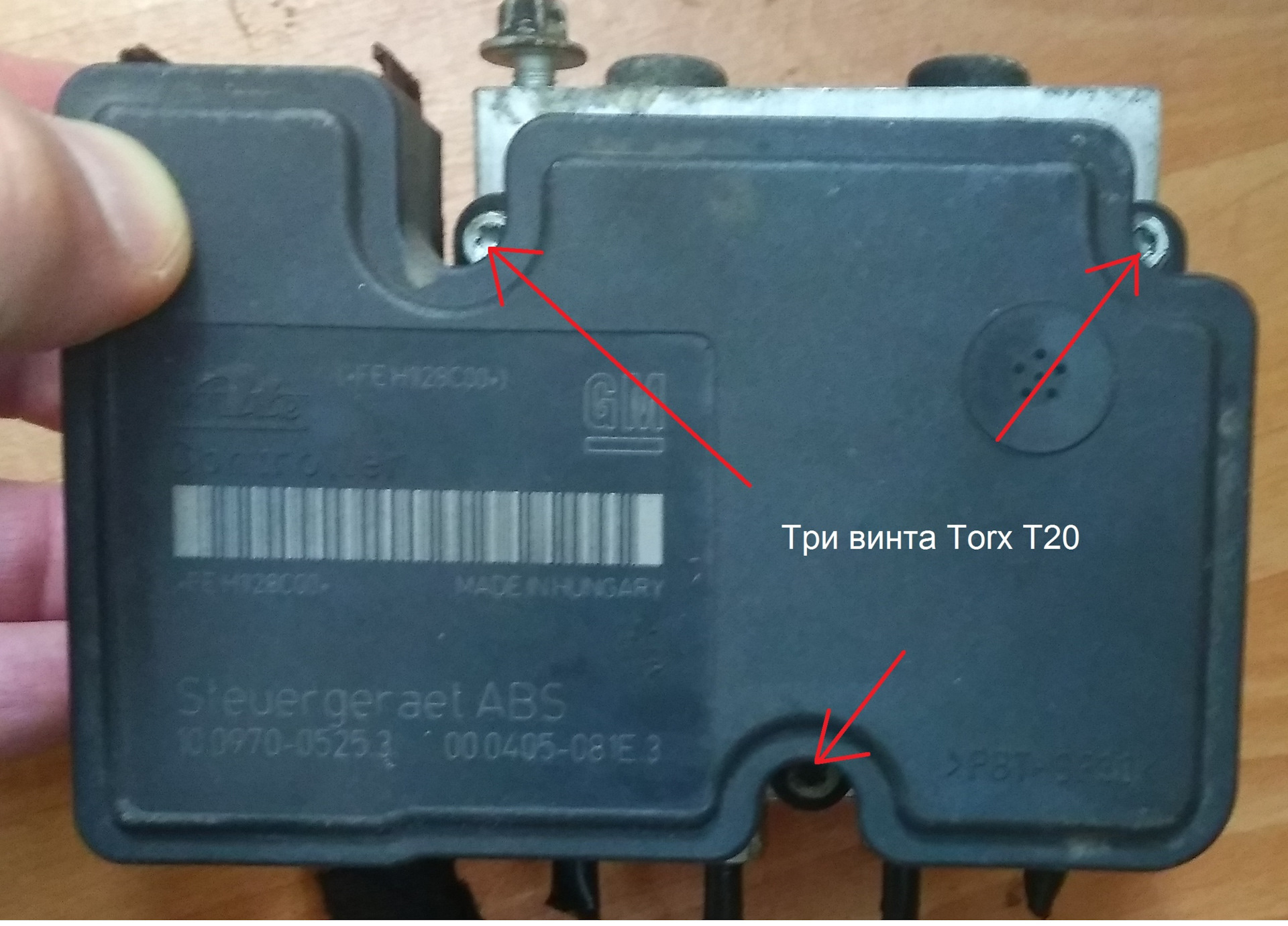 и убедился, что снять ЭБУ с самого блока ABS без отсоединения трубок ТЖ не представляется возможным. Блок ЭБУ снизу прикручен тремя винтами Torx T20, доступа к которым нет из-за того, что сам блок ABS в сборе не имеет достаточной степени свободы.