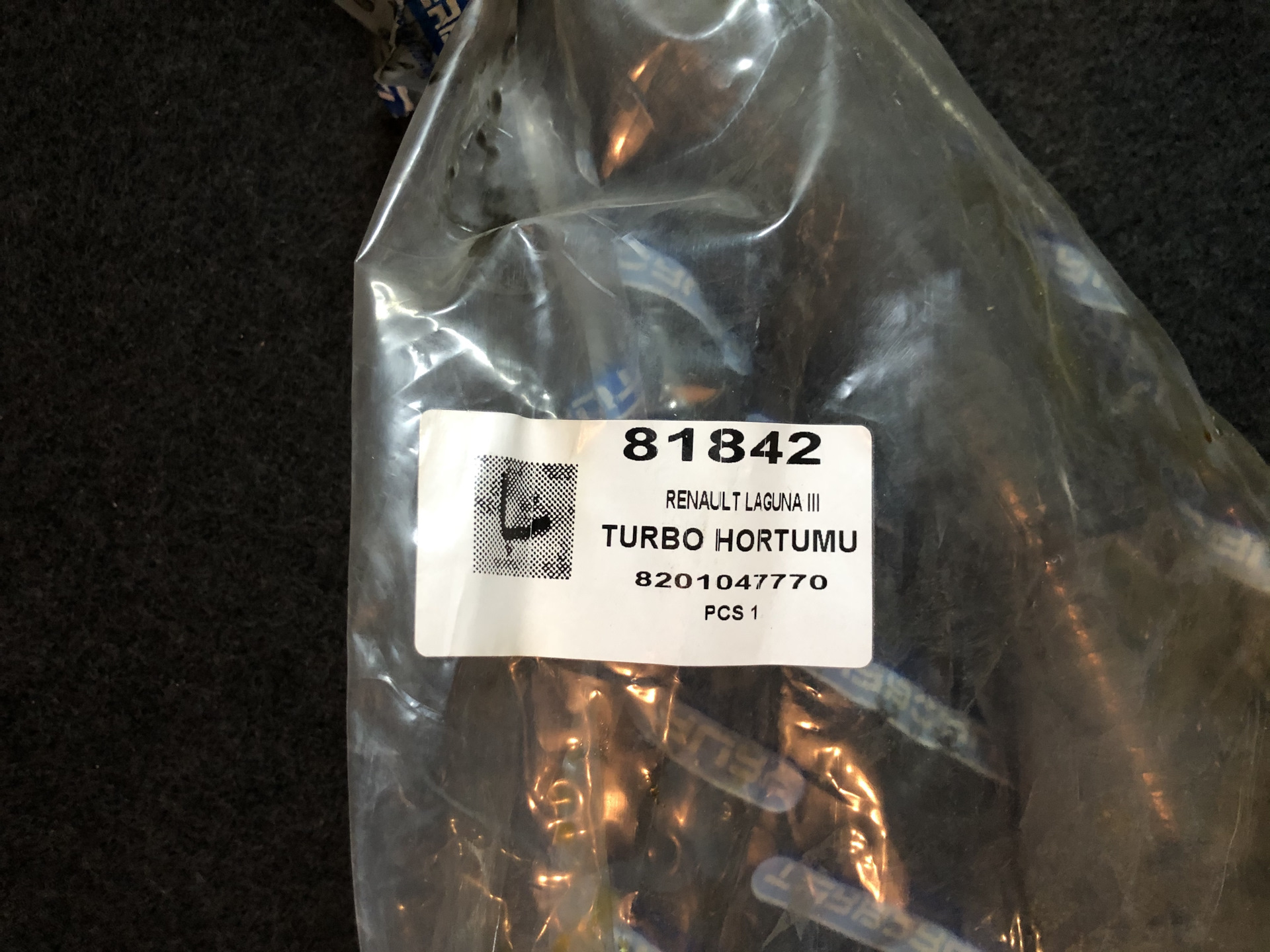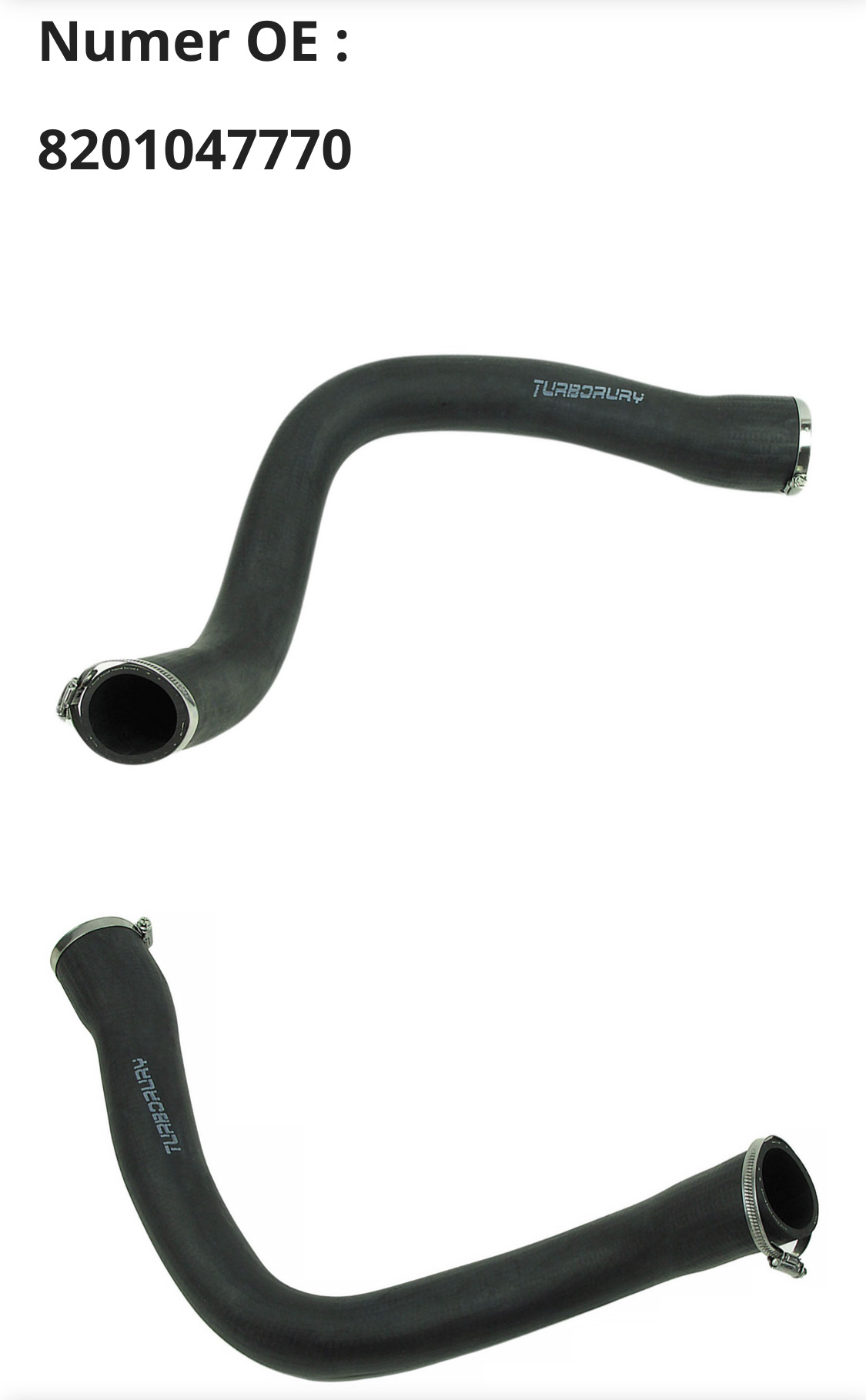 Родной патрубок не внушал доверия, начал потеть и появились трещины. Функцию свою он выполнял, но решил произвести замену. Оригинал идёт в комплекте с металлической трубой 8201047770 по совсем гуманной цене в 280$ Решил брать аналог от поляков TURBORURY и на Allegro нашел вариант за 80$ c доставкой.