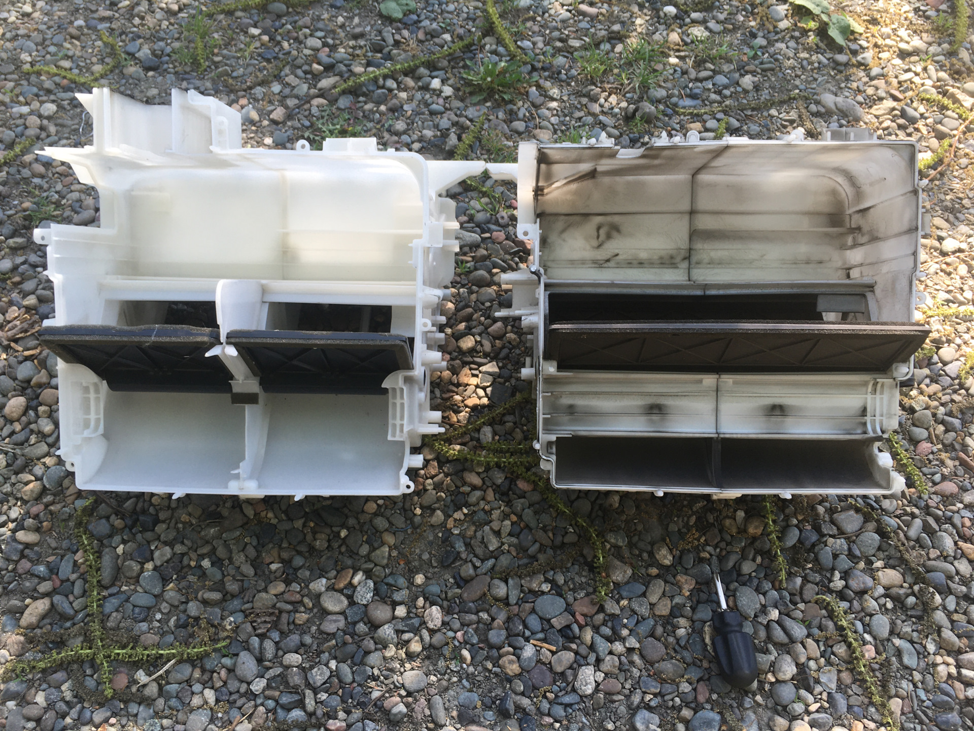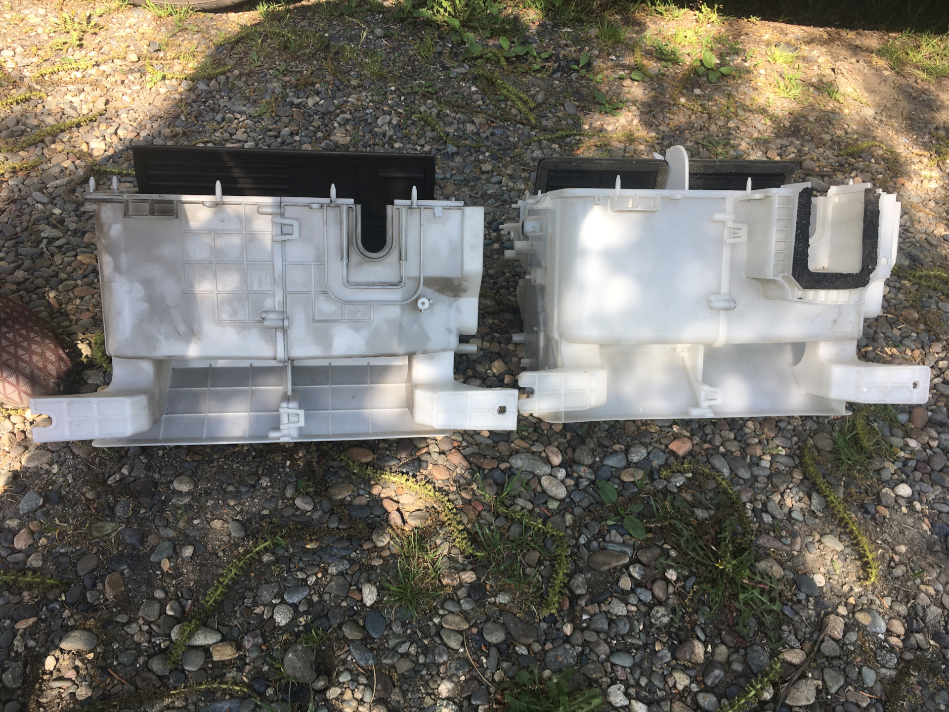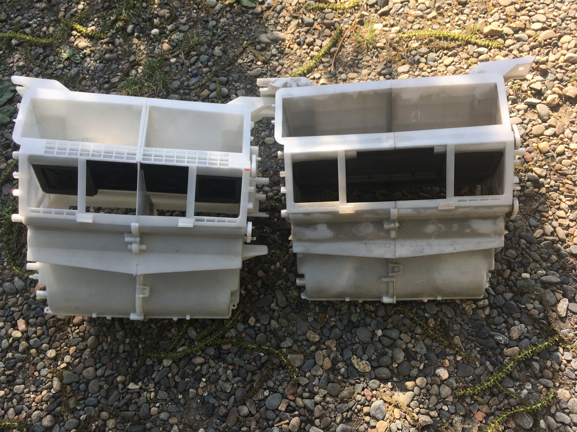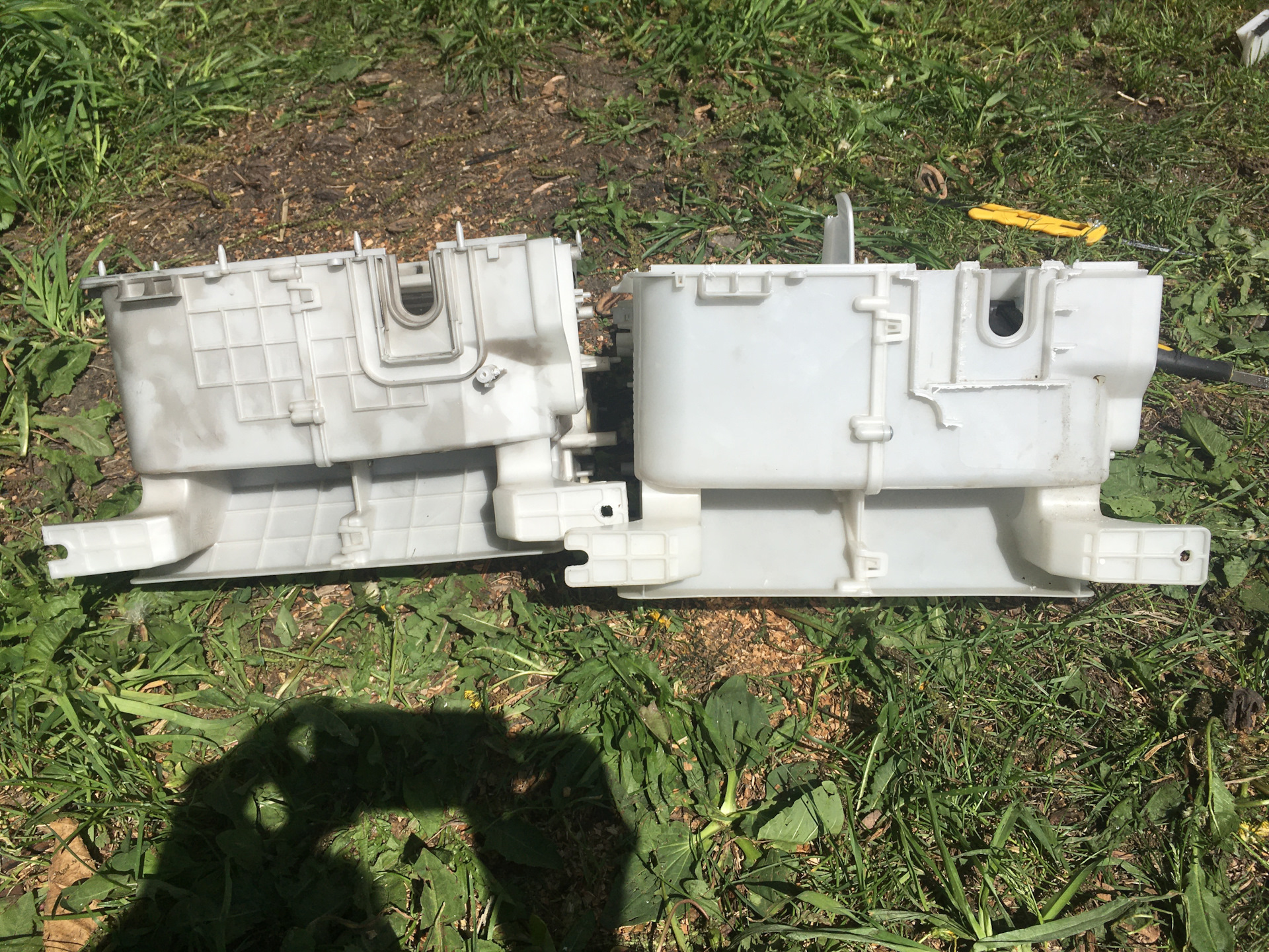 Еще нюанс — задняя часть, а именно коробочка места захода магистрали под радиатор печки в салон, у аута 3 она отличается а именно она единое целое с корпусом, у лансера же это отдельная часть, поэтому её нужно ее спилить вровень с нашей: