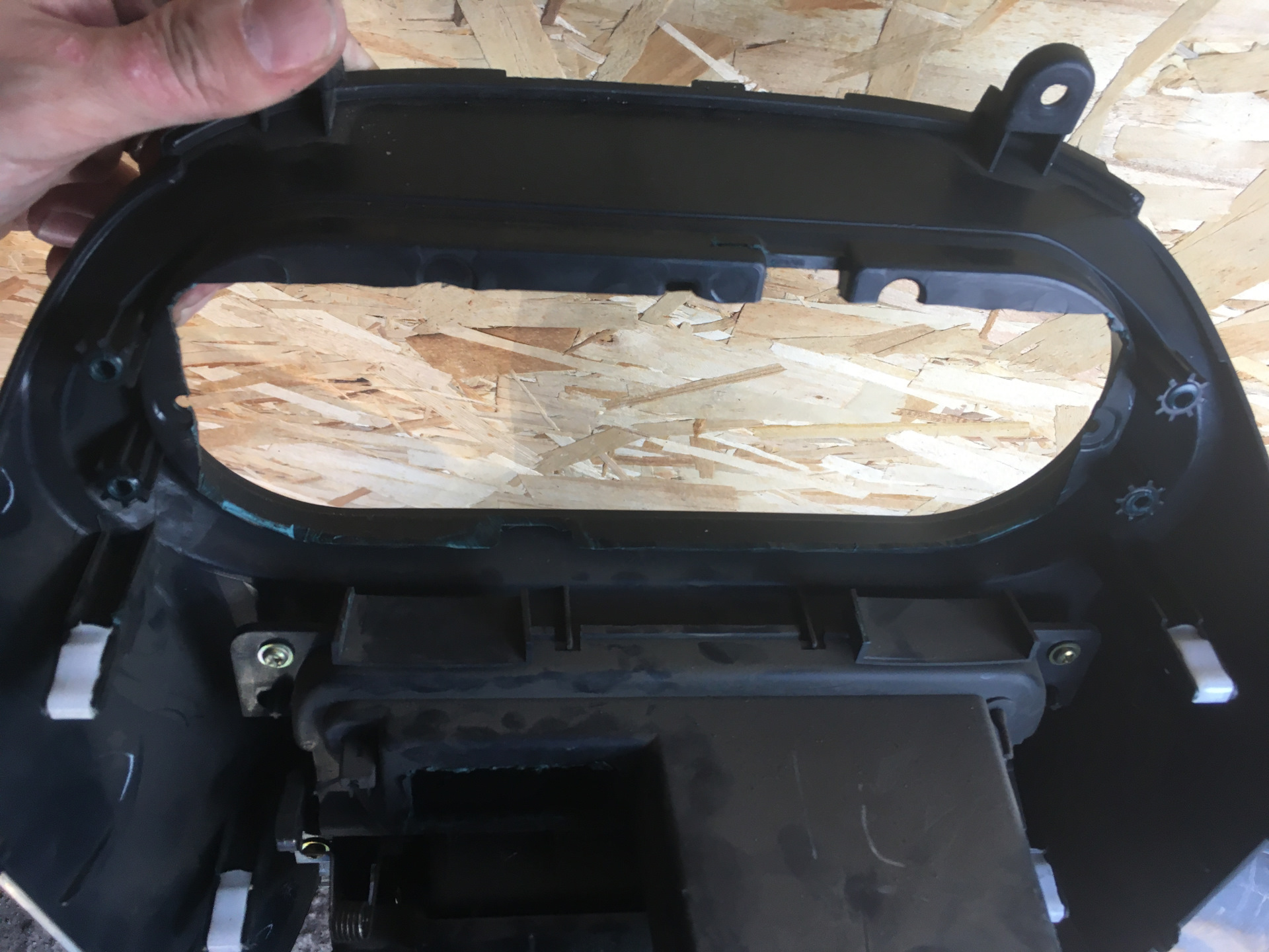 Напомню блок управления климатом от аута 3 влезет лишь в консоль с ящиками, в сток не хватит места, ну или придется кромсать саму рамку блока. В общем, берем консоль, разбираем часть с крутилками и отпиливаем всё что нам мешает:
