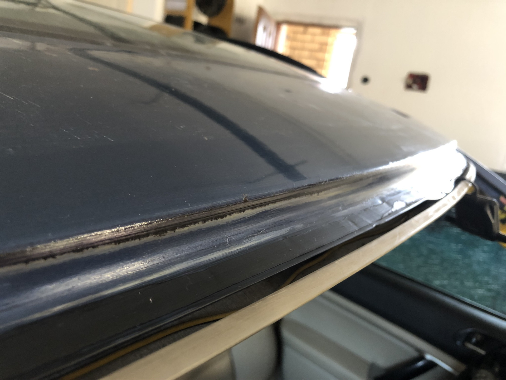 Как итог, убрана рыжесть верхней кромки с подкрасом в заводской цвет (позже будет всё делаться с полным покрасом крыши), также рыжесть на нижних ребрах стоек и у рейлинга. А также поменяно стекло.