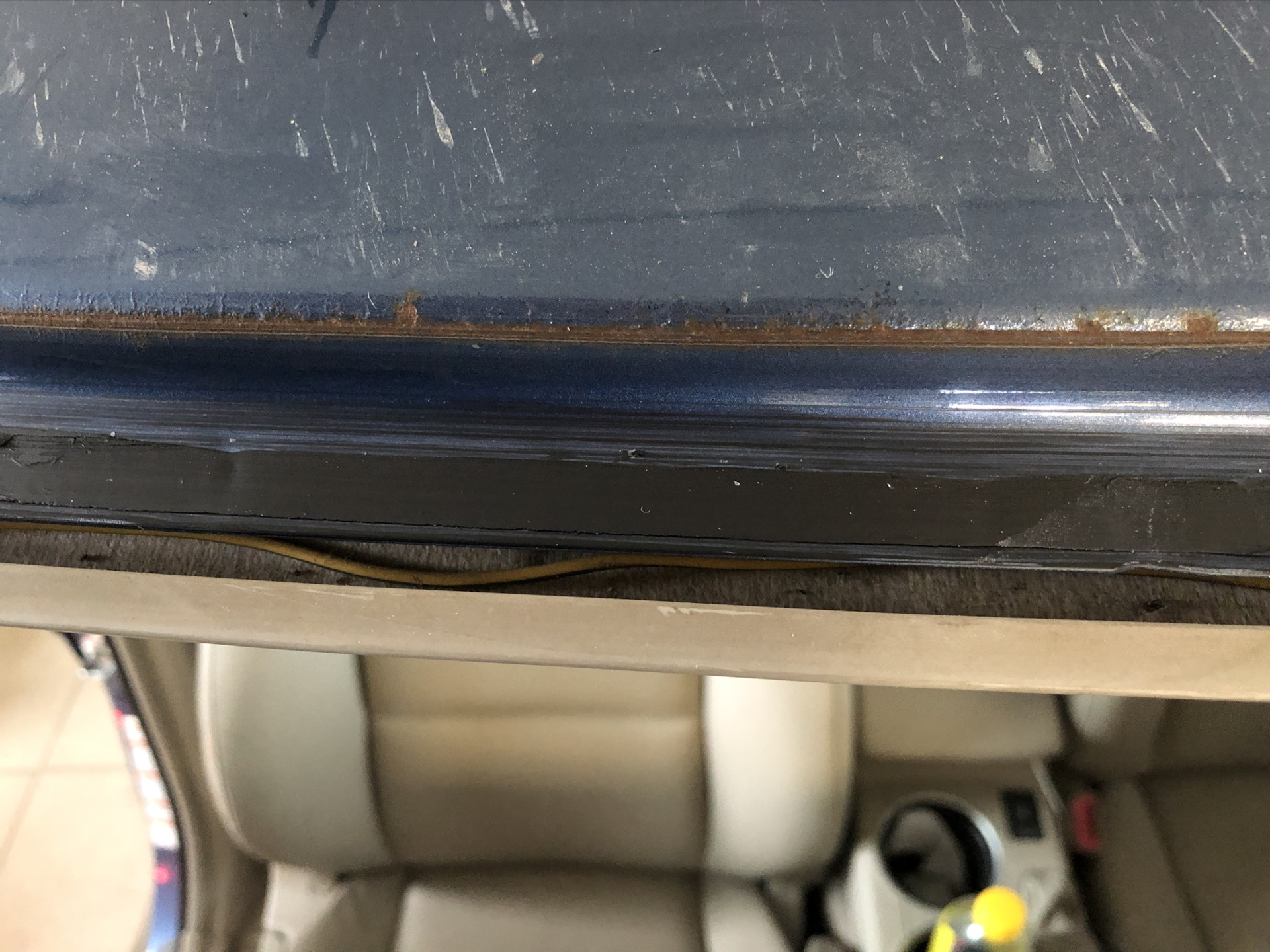 Ещё до установки заметил рыжесть на кромке крыши. Стал узнавать контакты хороших маляров, но цены работ колебались от 7 до 10 т.р. (за 10 предлагали покрасить стойки и часть крыши, до рейлингов). И это без замены лобового. Бюджет замены выходил за пределы. Было решено делать самому.