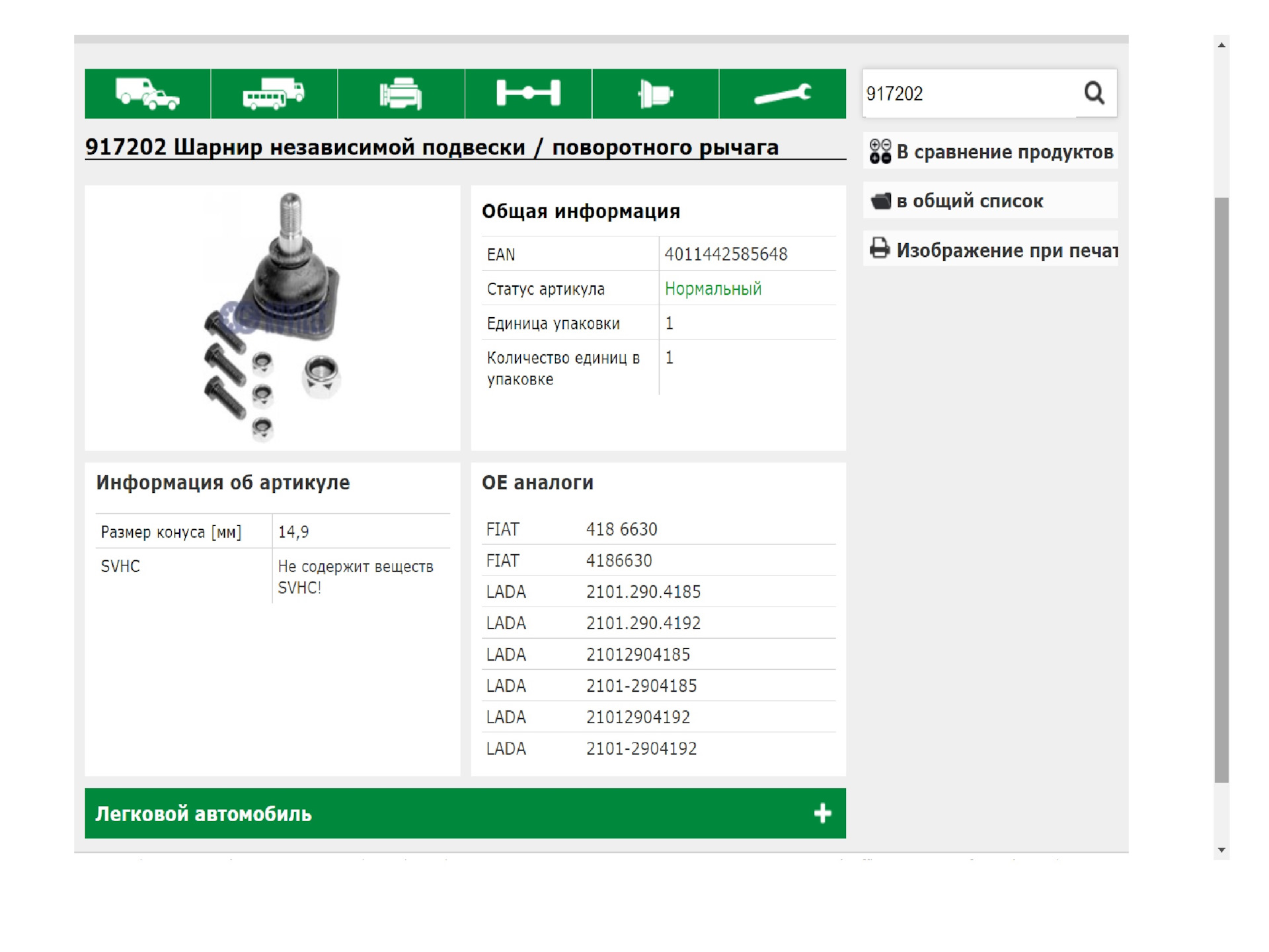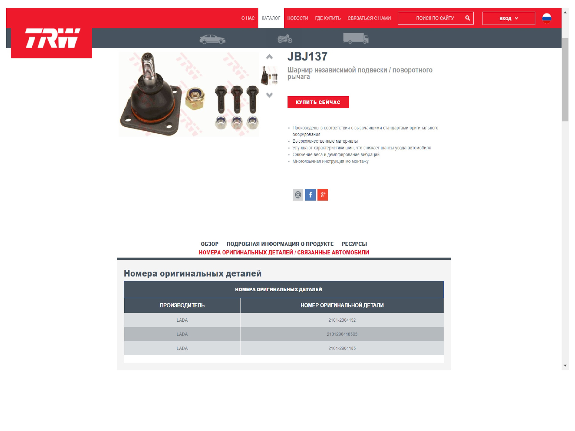 А Ruville, CTR, TRW/Lucas, Lemforder предлагают шаровые только от ВАЗ-2101.