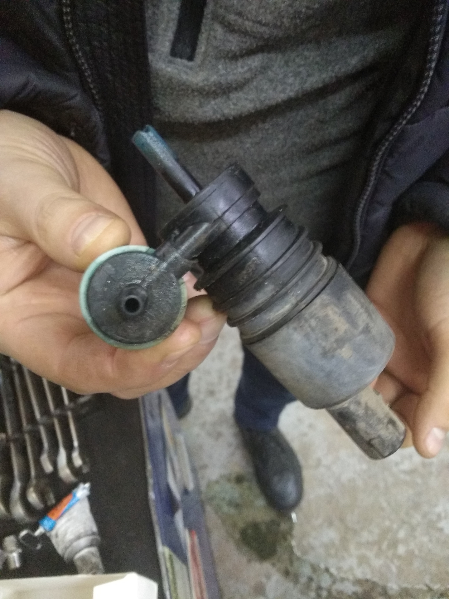 Всем хай! После кузовного ремонта стала с бампера капать "омывайка". Глянули, из насоса, который вставлен в бачок. Кузовщики сказали, что надо менять с бачком в сборе ибо начнёшь его доставать, всё отломается и произойдёт ядерный взрыв))))) В общем, купил новый насос такой корейский, весь из себя)))):