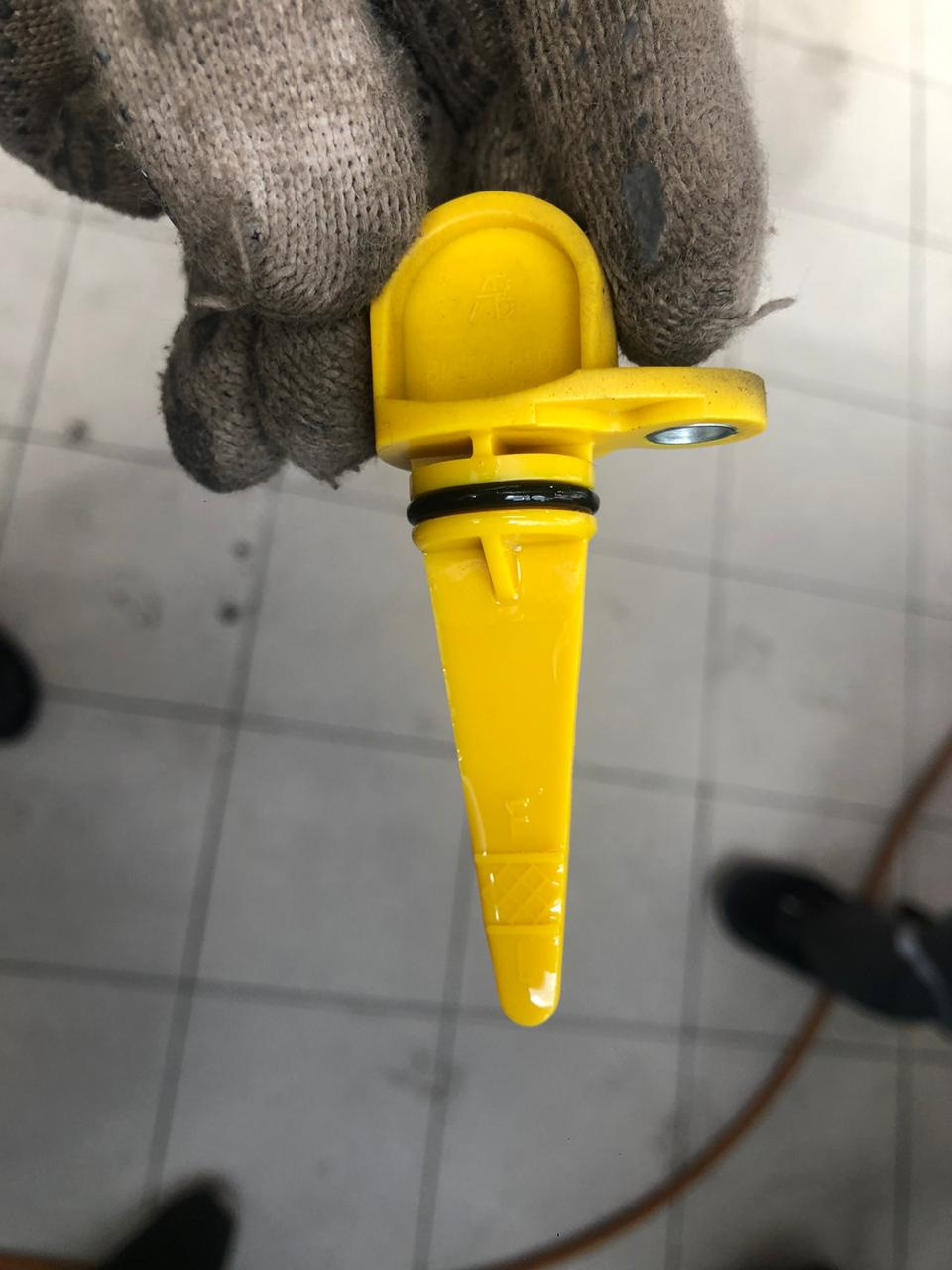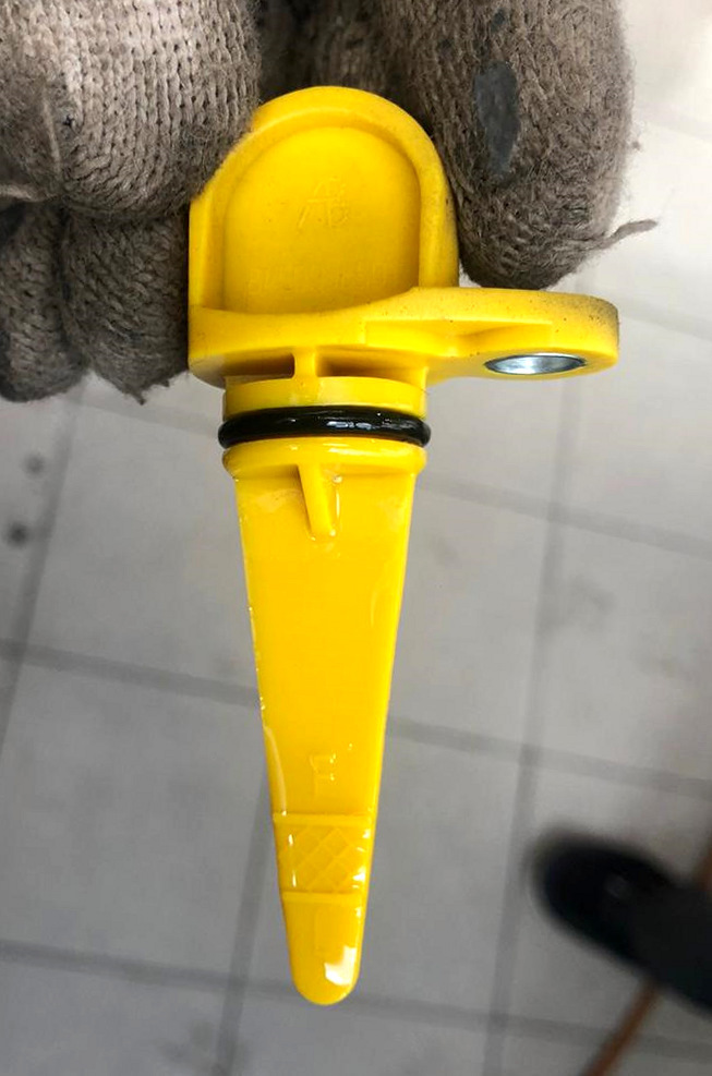 Замер уровня произвёл через отверстие, которое ранее использовалось для Датчика Скорости и закрыто у нас технологической заглушкой жёлтого цвета.