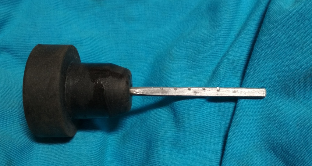 Перед сливом заводского масла из КПП, изготовил нехитрый щуп из алюминиевой проволоки и пробки от бутылки.