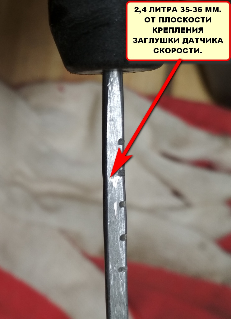 Залить было решено 2,4 литра, что по щупу составило 35-36 м. от плоскости КПП
