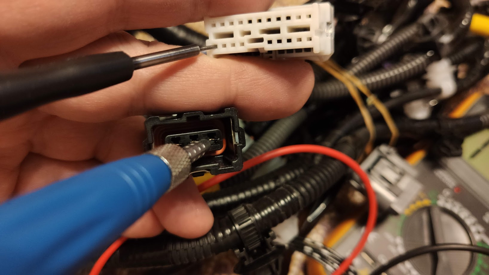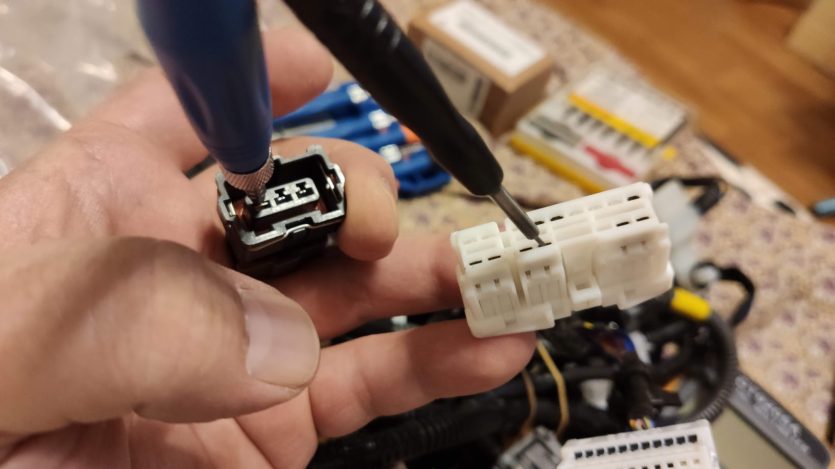 На фото прозвон новой косы с целью найти соответствия — на фото корректные соответствия коннектора датчика скорости — средний провод — земля.