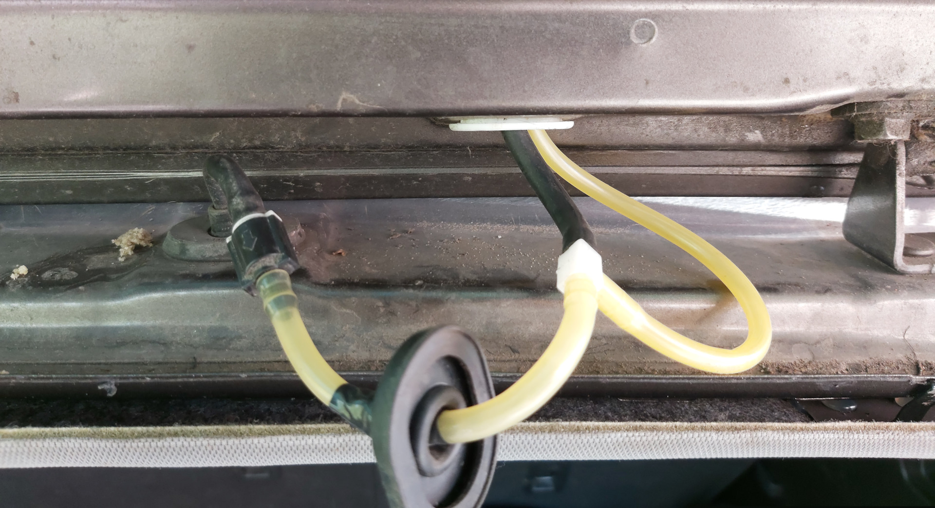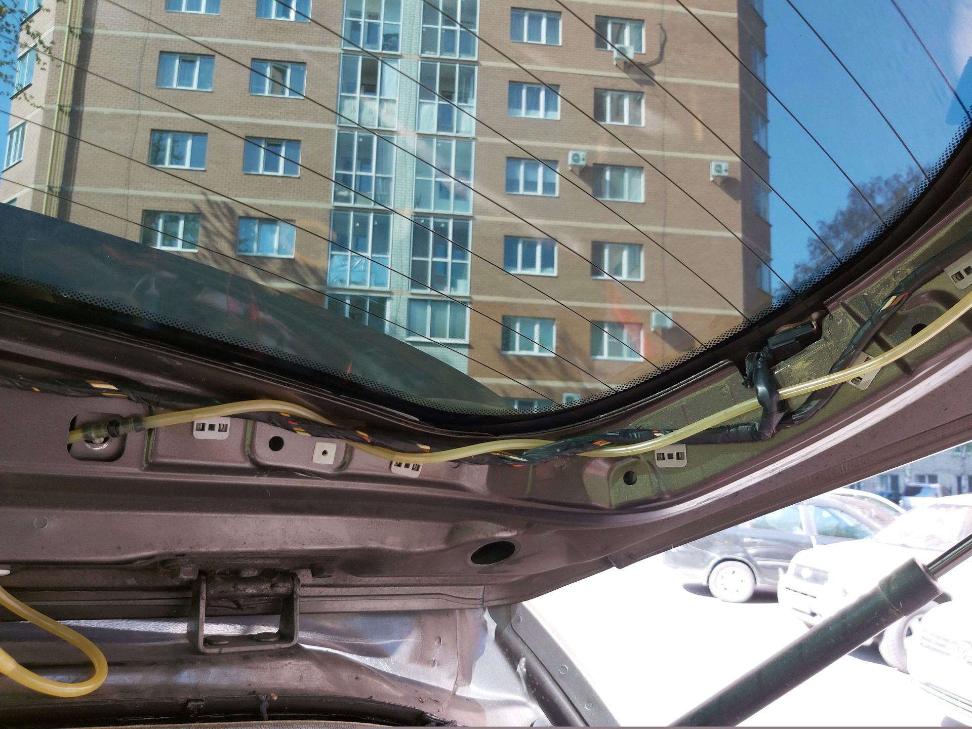 Далее прокладываем трубку для подачи жидкости и подключаем ее к омвателю заднего стекла — фото 10-15. Трубочка с тройником от жигулей-классики стоит еще 150 рублей.