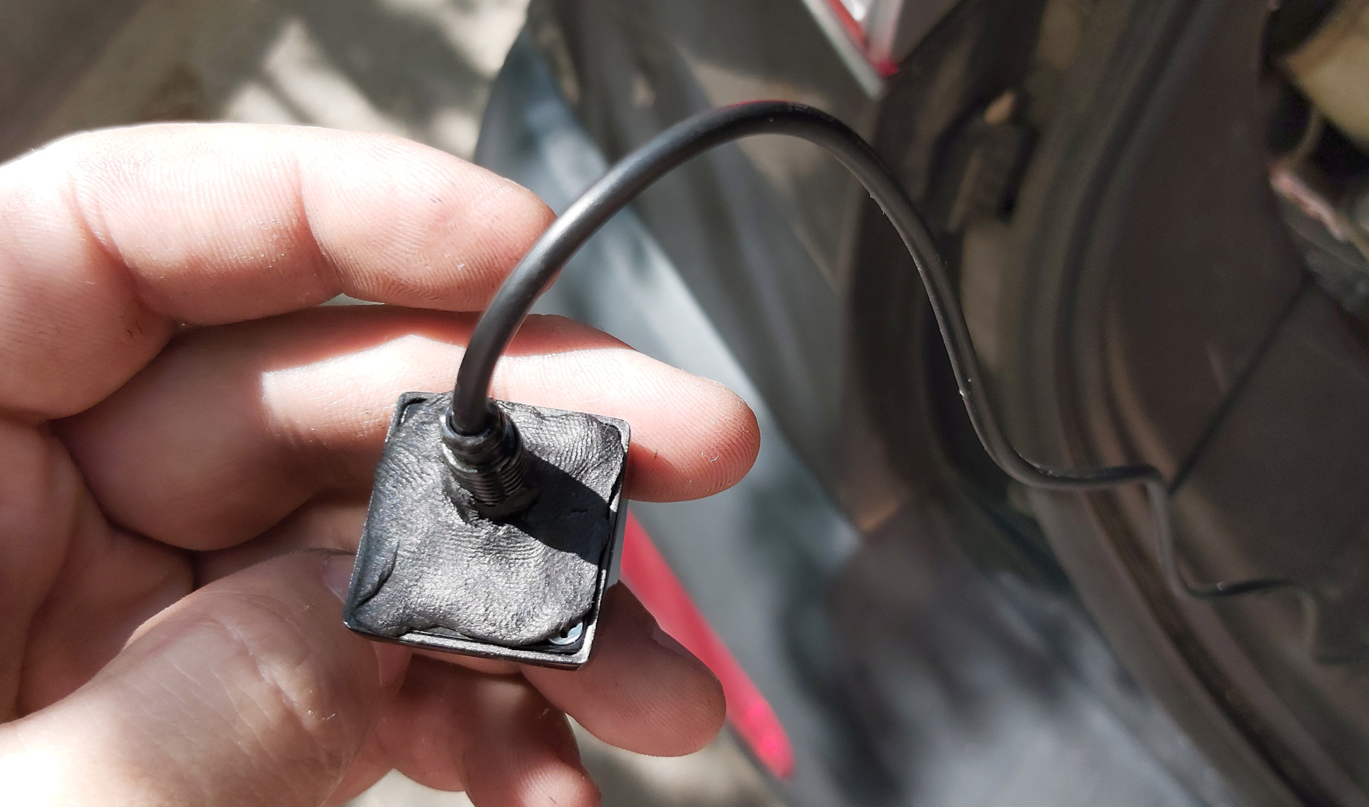 Для того чтобы воду не проникла в камеру на ее обратную сторону прилепил немного смолы от виброизоляции (фото 7).