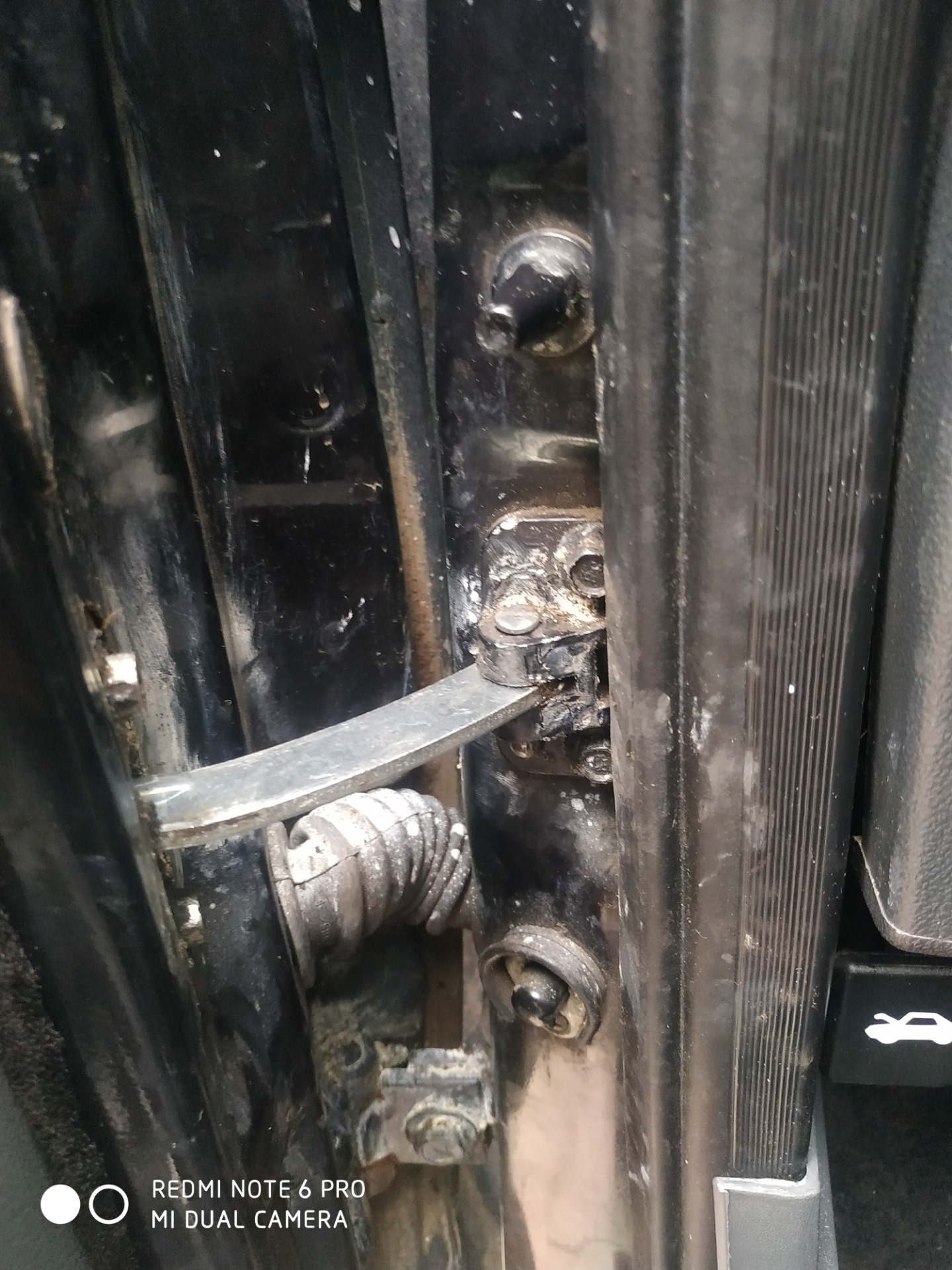 Остановился, открутил ее и ооо чудо. Идеальная тишина. Забежав в магазин, взял новые клипсы, новый упор двери, сразу возле магазина поставил все это. Еду, а звук ещё есть, но уже в 2 раза тише. Остановился, стал смотреть. Оказалось что болты, которые держать крепление упора к стойке откручены и само крепление слегка ходит.