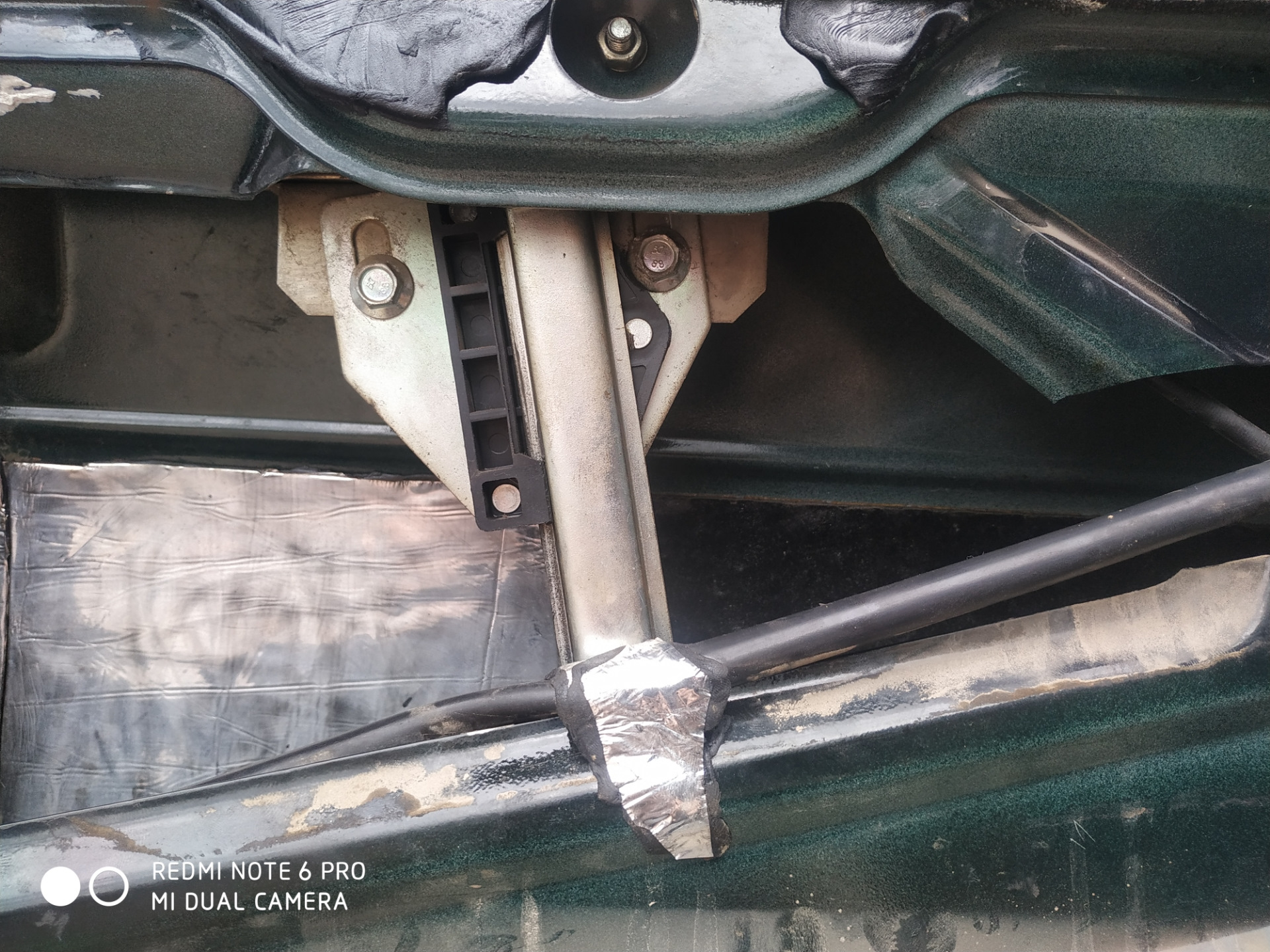 Также, пока катался, нащупал ещё несколько мест, откуда могли идти звуки. Взял старую шумку, оторвал куски и прилепил на эти места, предварительно обезжирив.