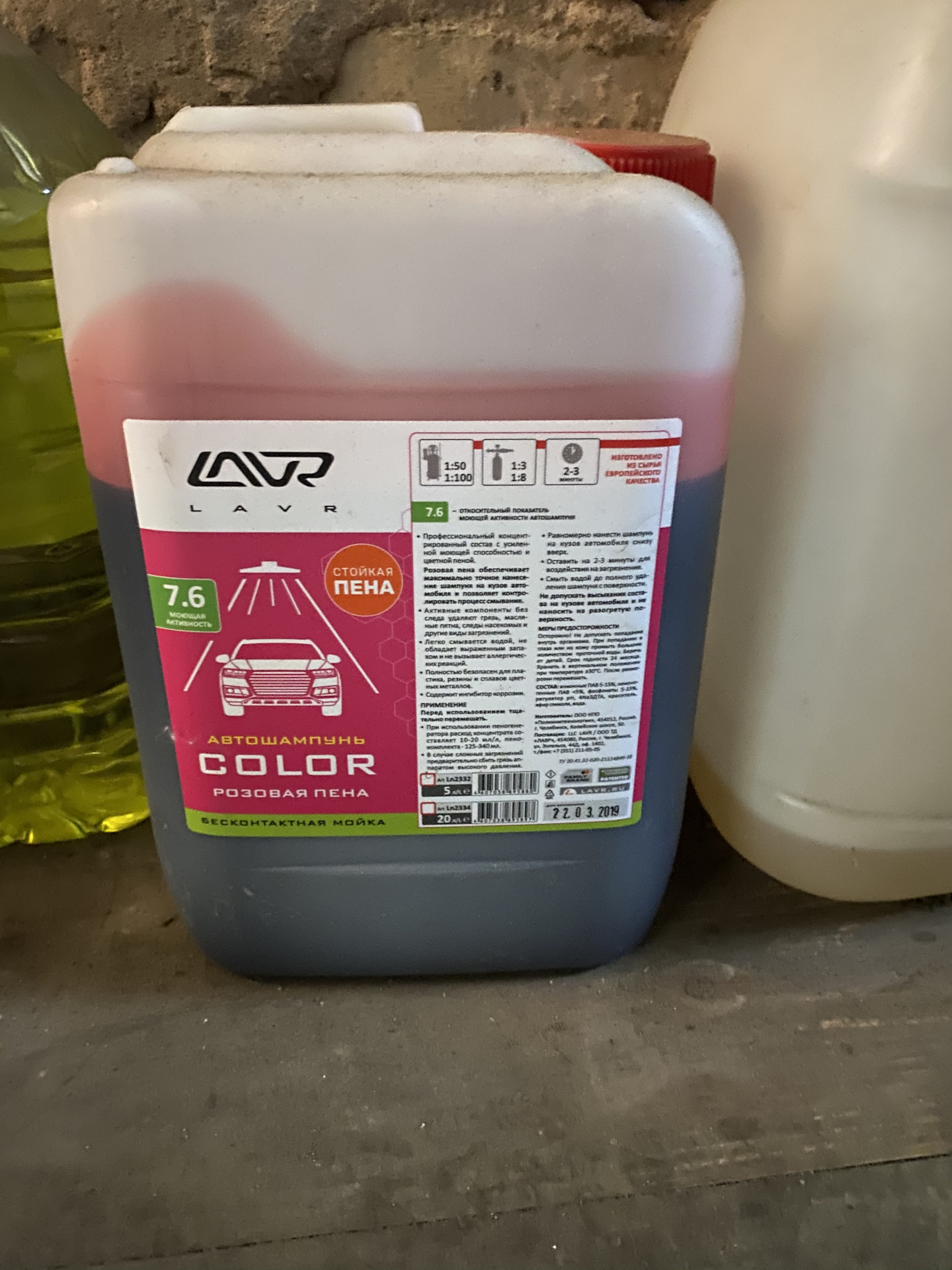 За тем через пеногенератор с али нанёс шампунь Lavr.