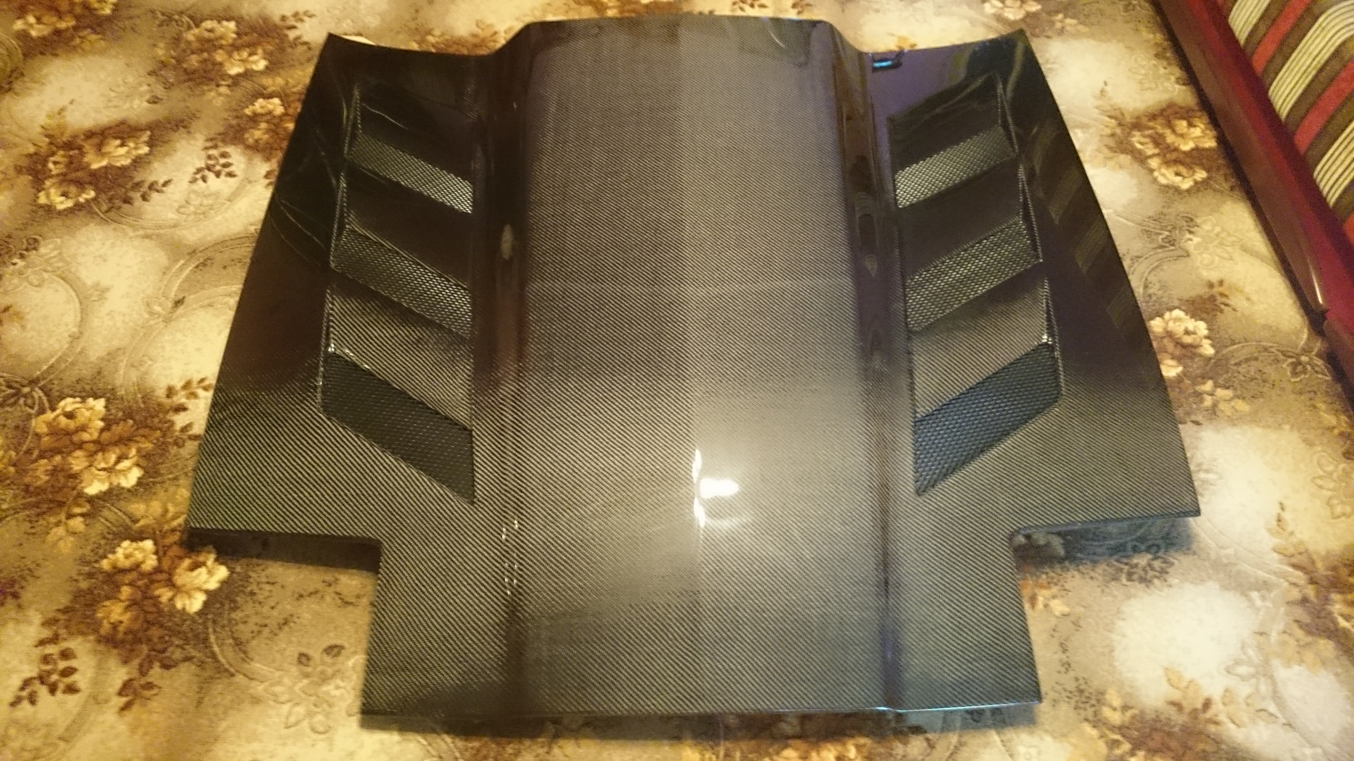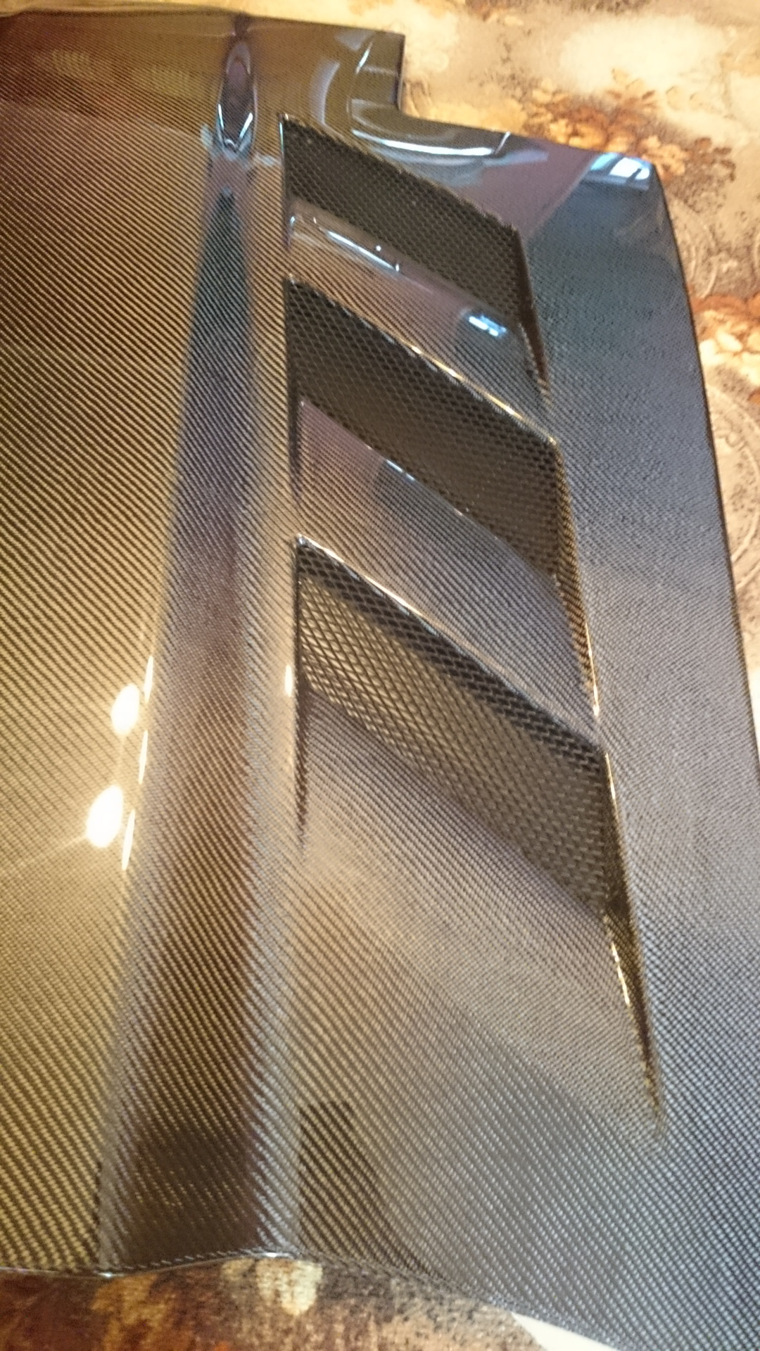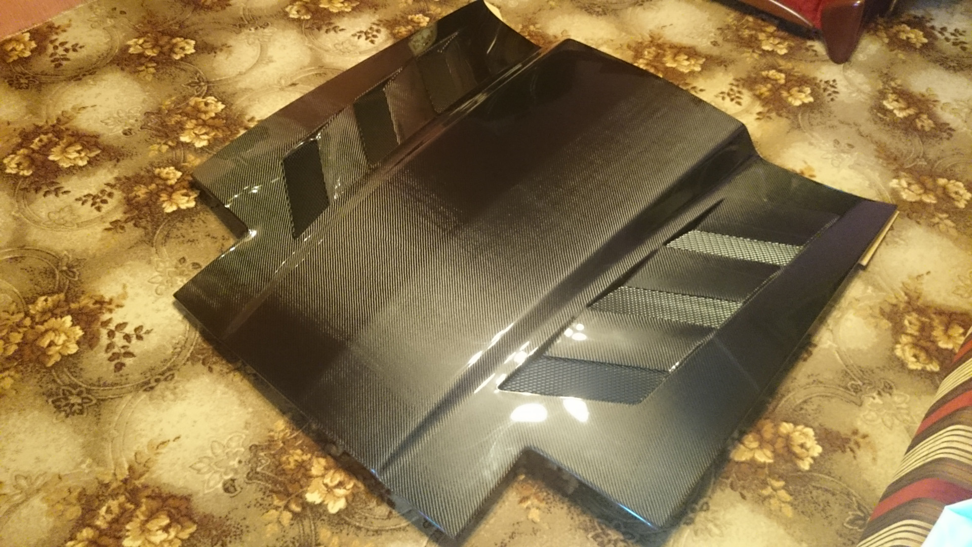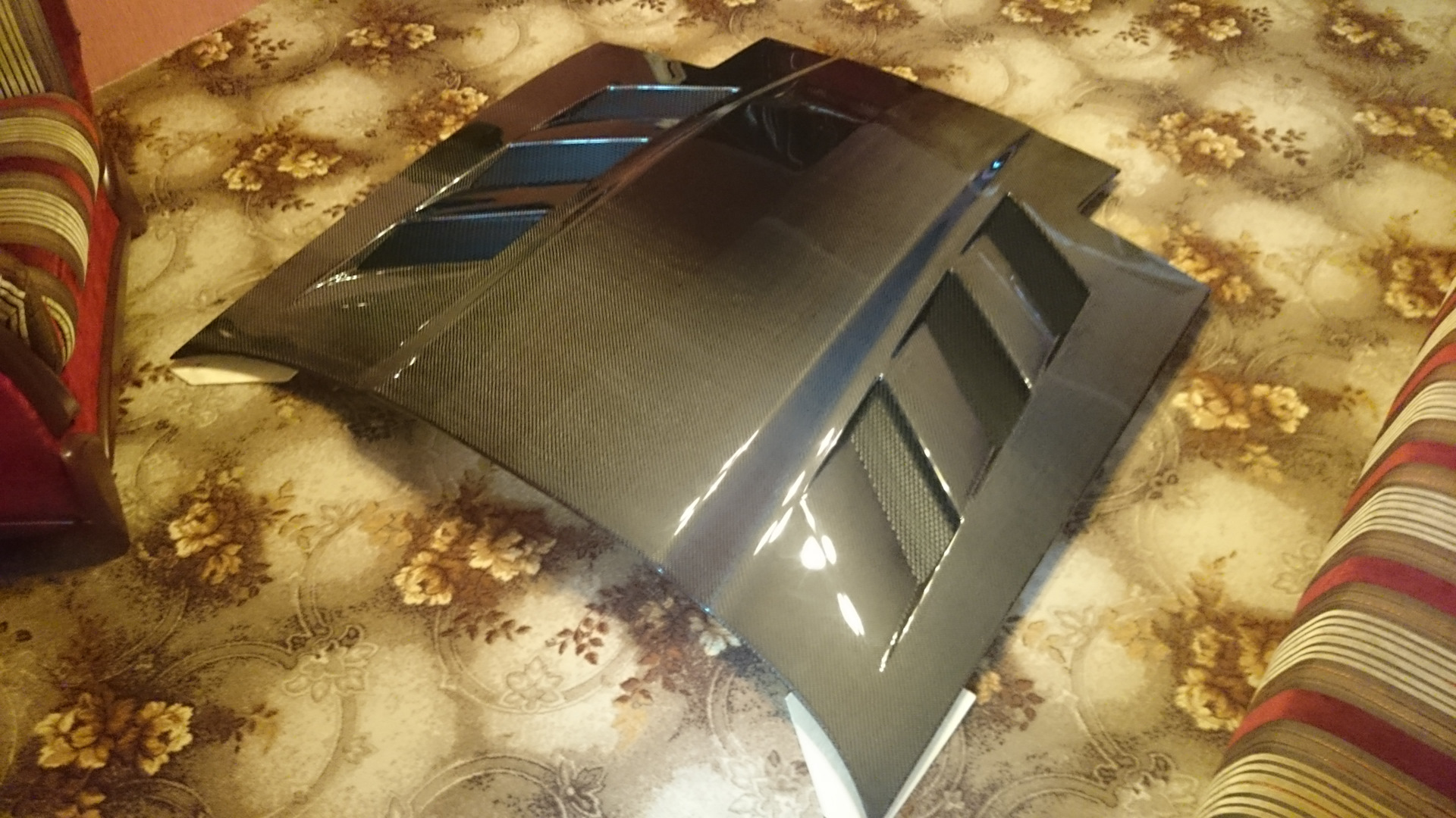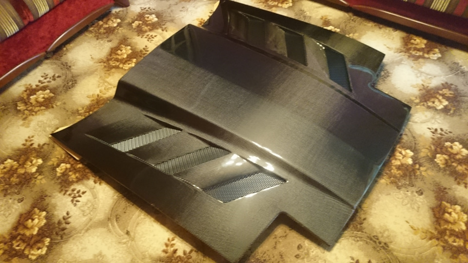 Наконец распаковал Карбоновый Капот! Там все есть, Шаровые под Упоры, Гайки вмонтированы для Петель Капота, Петля для Замка Капота! Плюс Горб шире на 8 см. и выше на 4 см. от уровня стандартного, что дает дополнительное Охлаждение для 5 и 6 Цилиндров! Там выход около Лобового стекла, и Направляющие потока Горячего Воздуха!