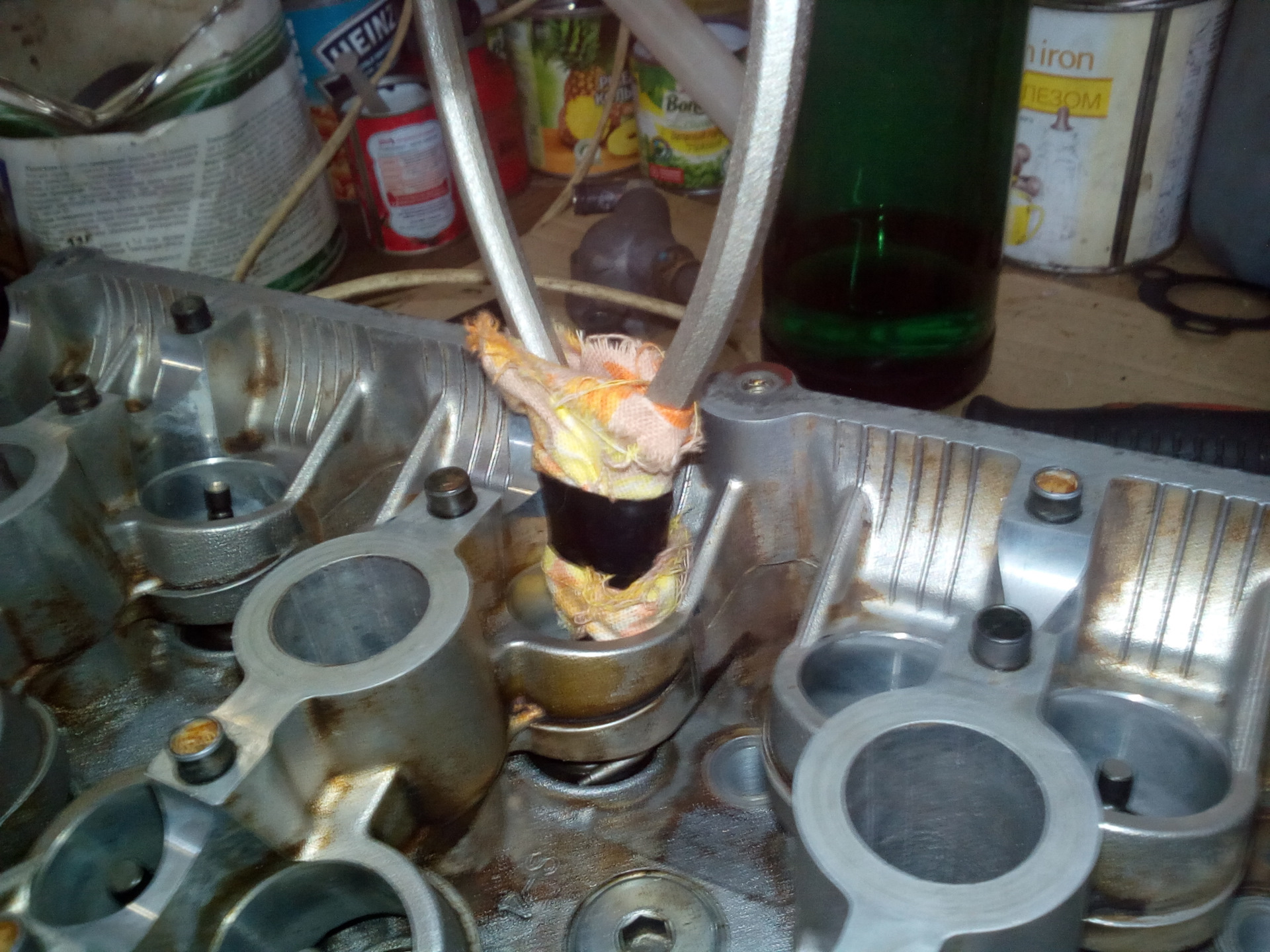 Новые колпачки сажал на место удлиненной головкой на 10. Далее сборка в обратном порядке, проверка керосином(2 клапана вспотели, но я забил) и проверка зазоров.