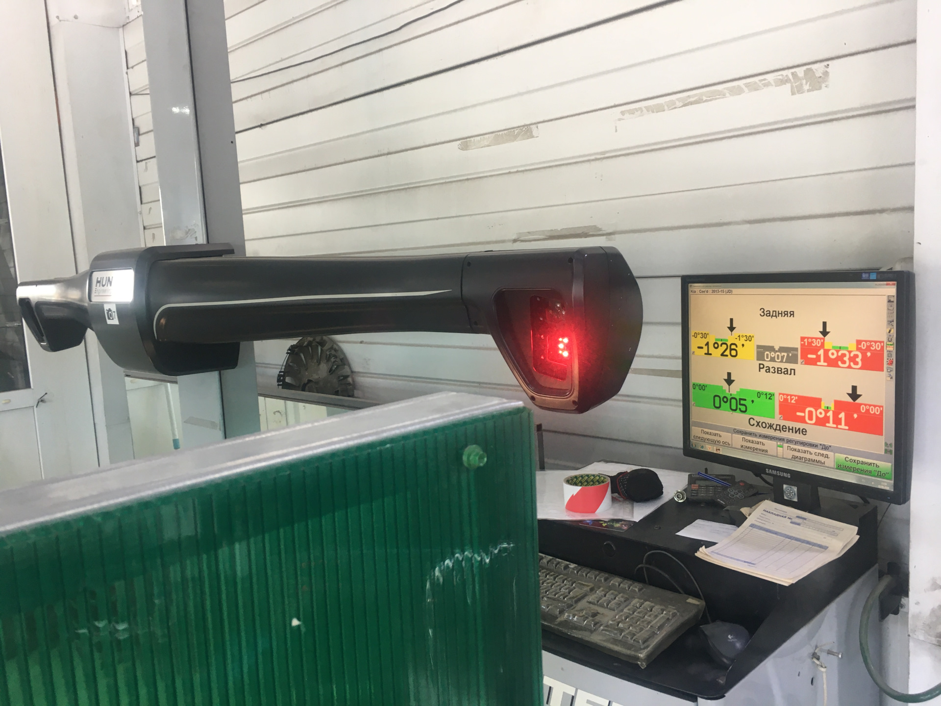 Далее был черёд сход/развала, оборудование Hunter: диагностика показала отклонения, что не удивительно, редко можно встретить идеал, пара градусов да норовит сбиться. Значения на экране отходят от нормы, но не на столько, чтобы начало «жрать» резину, поэтому делать или нет выбор за мной. Я решил сделать, пусть будет, никогда ведь не было, да и интересно было узнать судьбу регулировочных болтов.