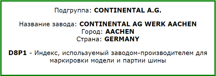 Страна производства: Made in Germany (пишется очень мелким размером букв, в том месте, которое в дальнейшем закрывается ободом диска, поэтому дополнительно провёл расшифровку DOT кода, у всех моих шин он одинаковый):