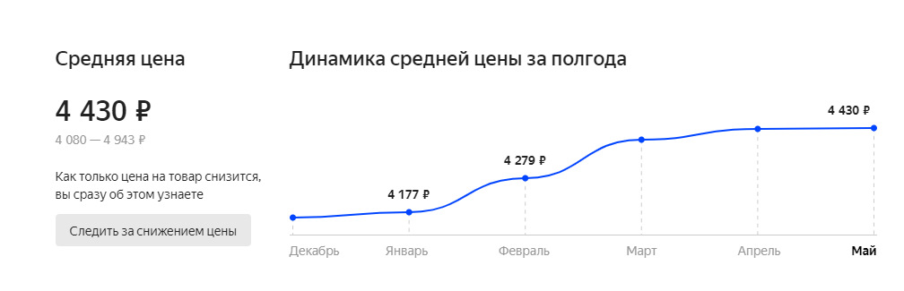 Шины брал в самый разгар сезона, всегда рекомендуют приобретать летние зимой, а зимние летом. Ниже приведу динамику изменения цен, если её проанализировать, то мы увидим, купив я летний комплект в декабре, получилось бы сэкономить около 260 рублей, что составляет 5,99%. Однако, не стоит забывать, в не сезон исключены акции по бесплатному шиномонтажу, таким образом ничего не потерял, а скорее наоборот!