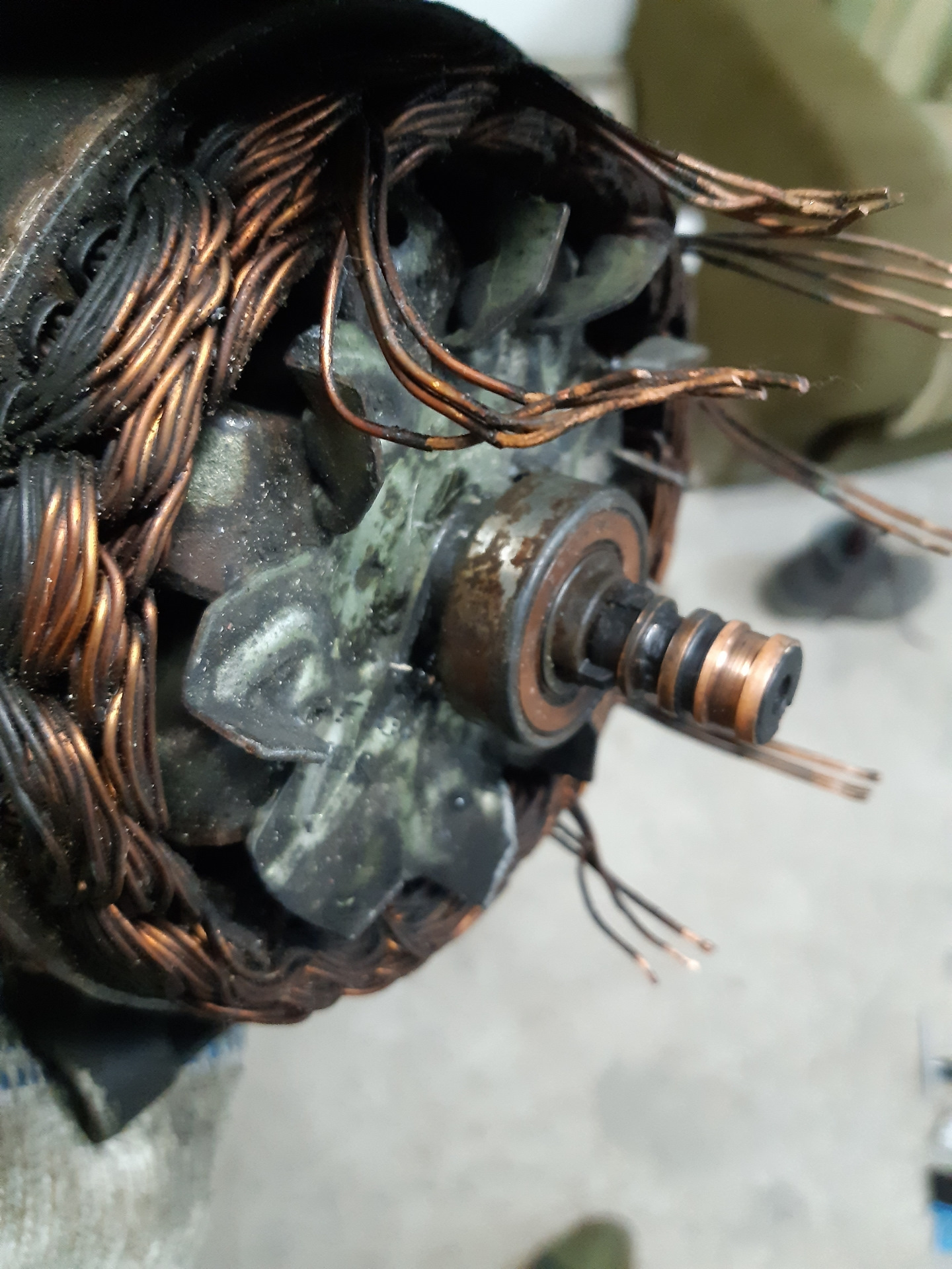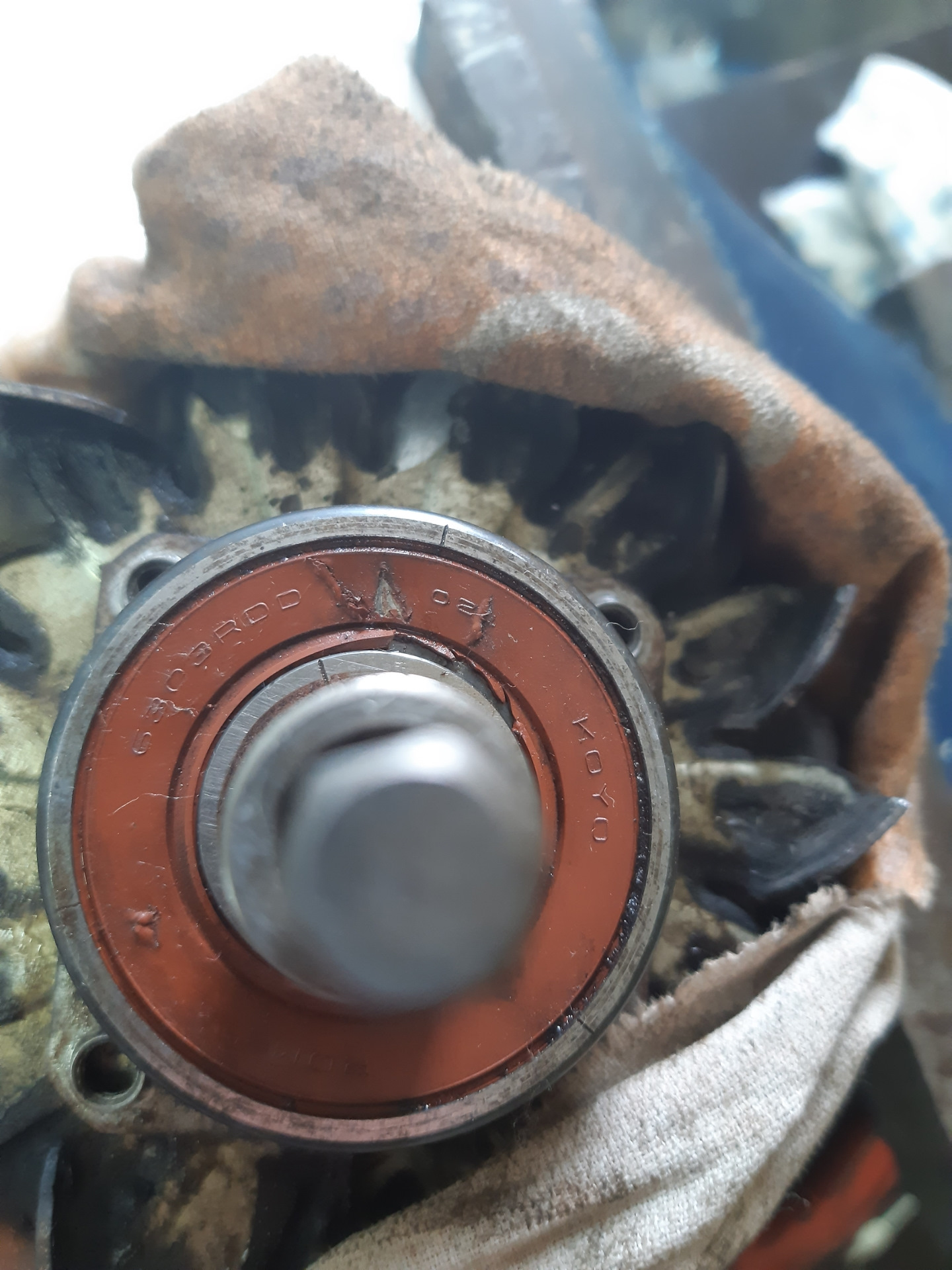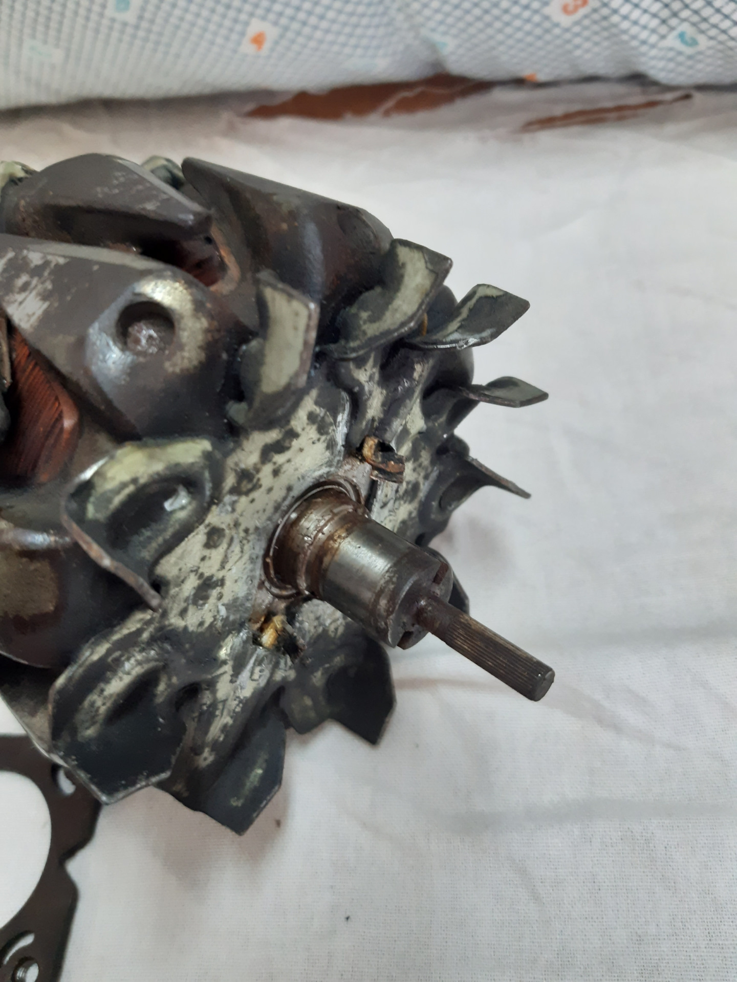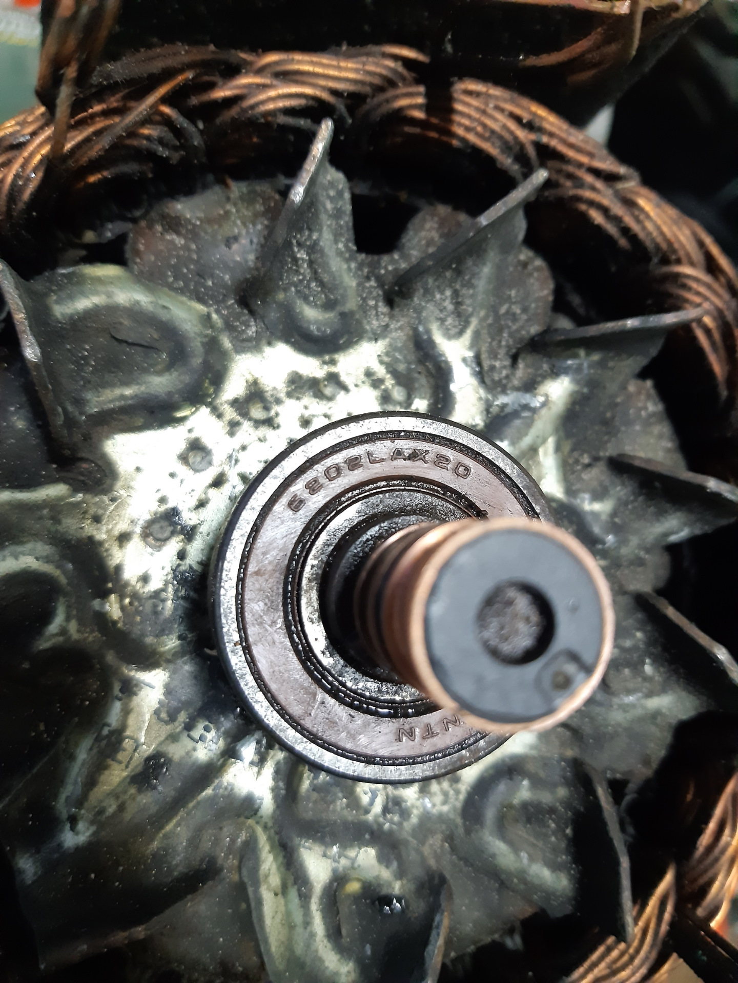 Это я уже потом понял, что нужно было постараться снять заднюю крышку вместе со статором, а когда половинил, задняя крышку сразу начала слезать со статора и с подшипника.