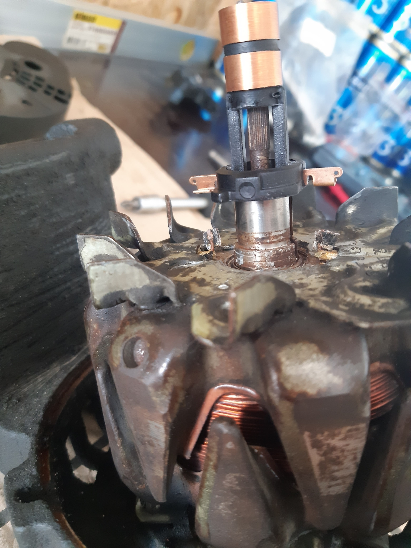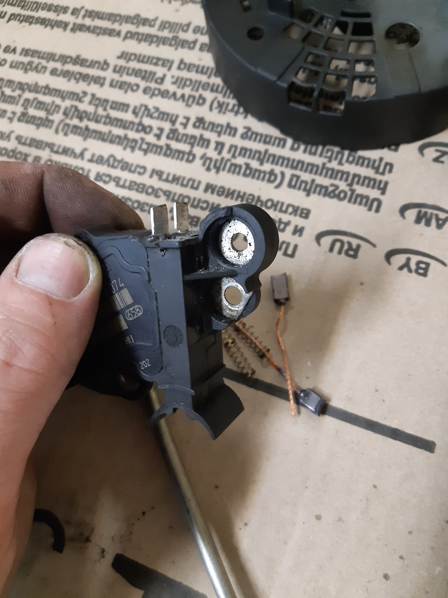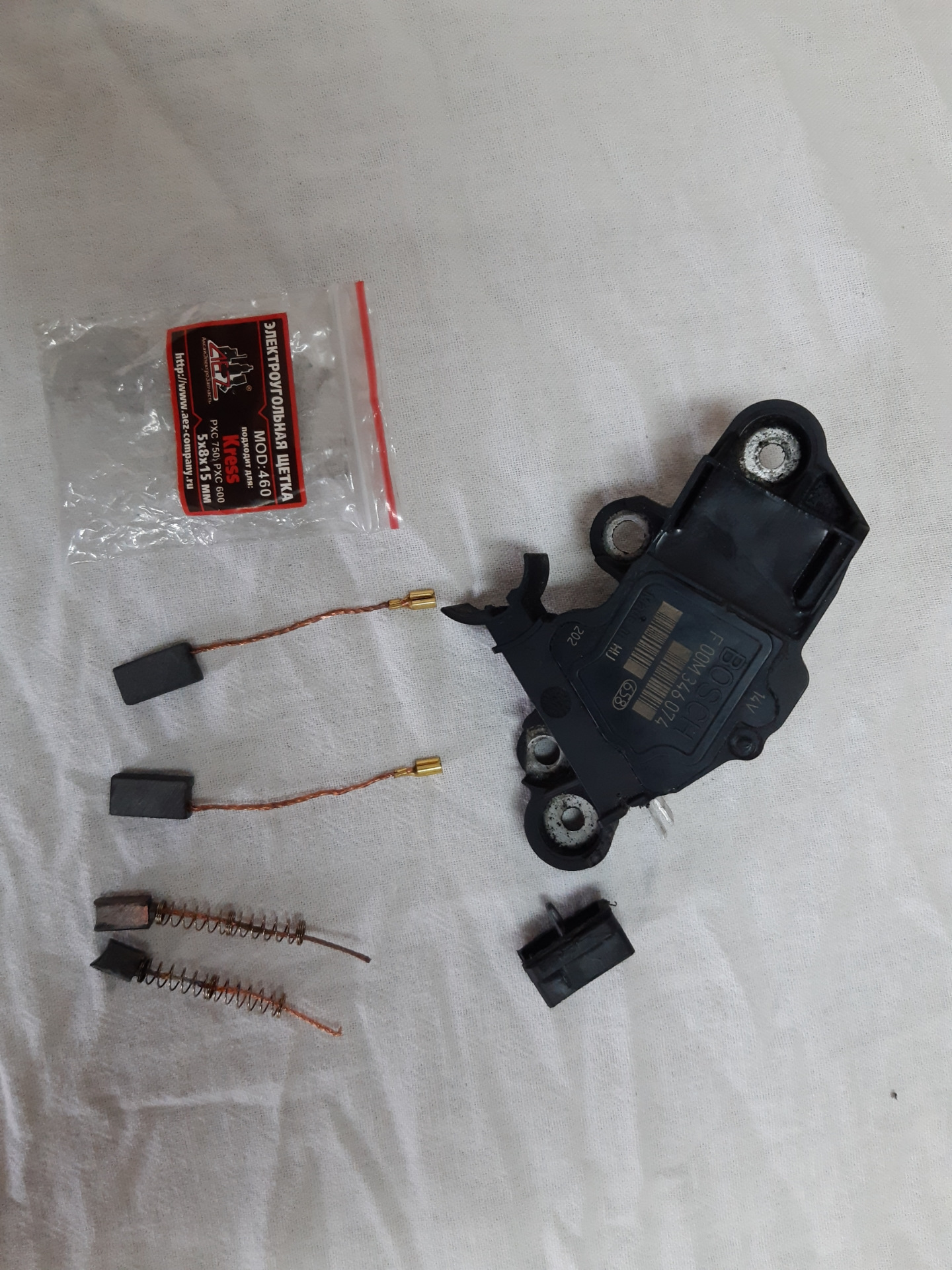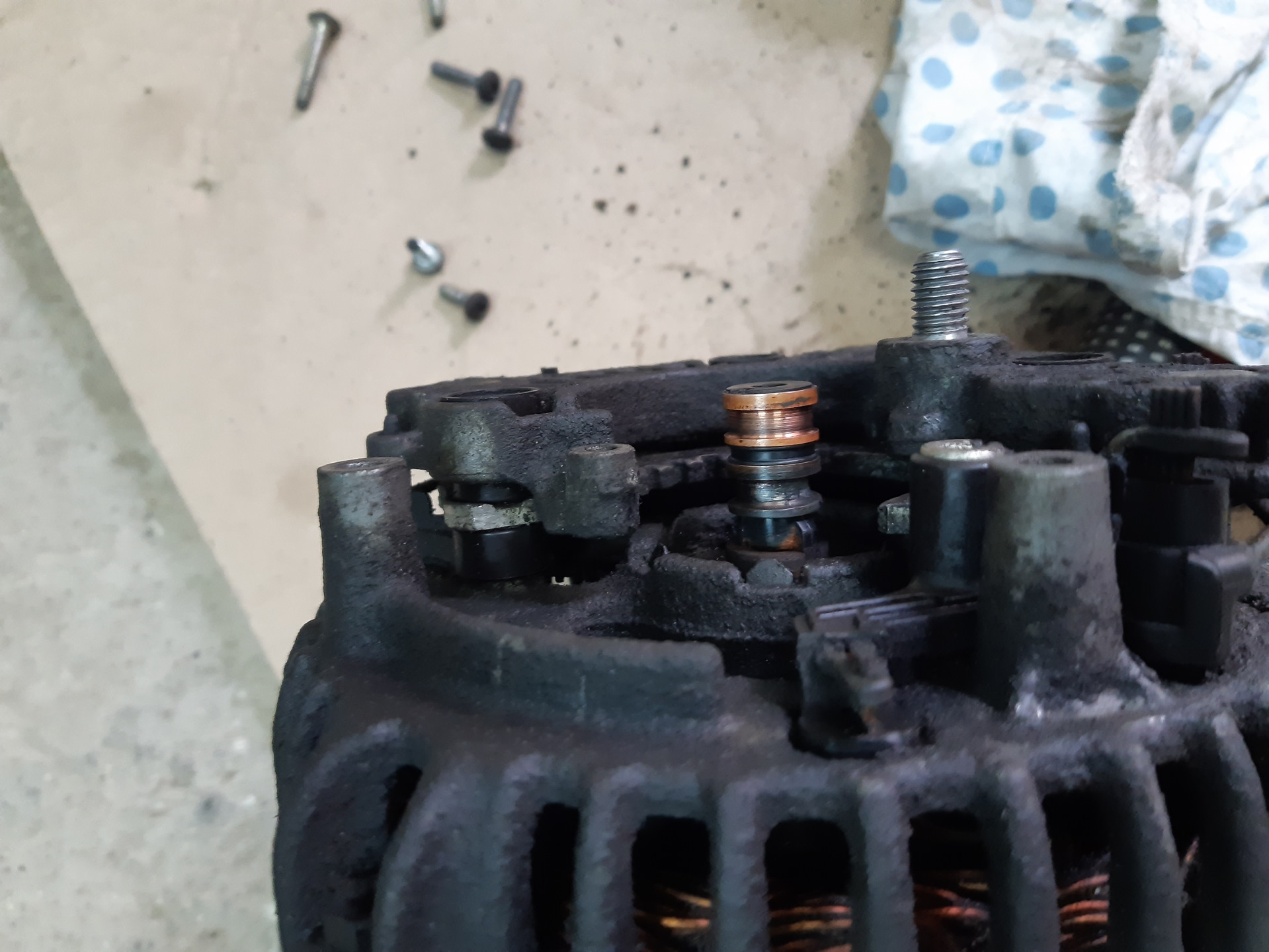 Было принято решение заменить токосъёмные кольца, подшипники и обгонную муфту, т.к обгонка не работала. Регулятор напряжения решил не менять, но щётки заменил, хоть они и не заменяемые были😋